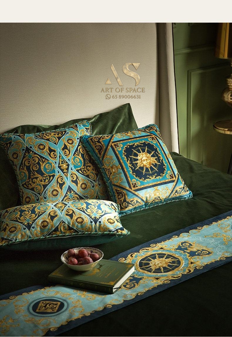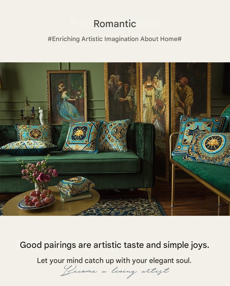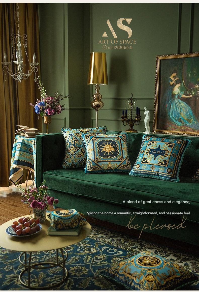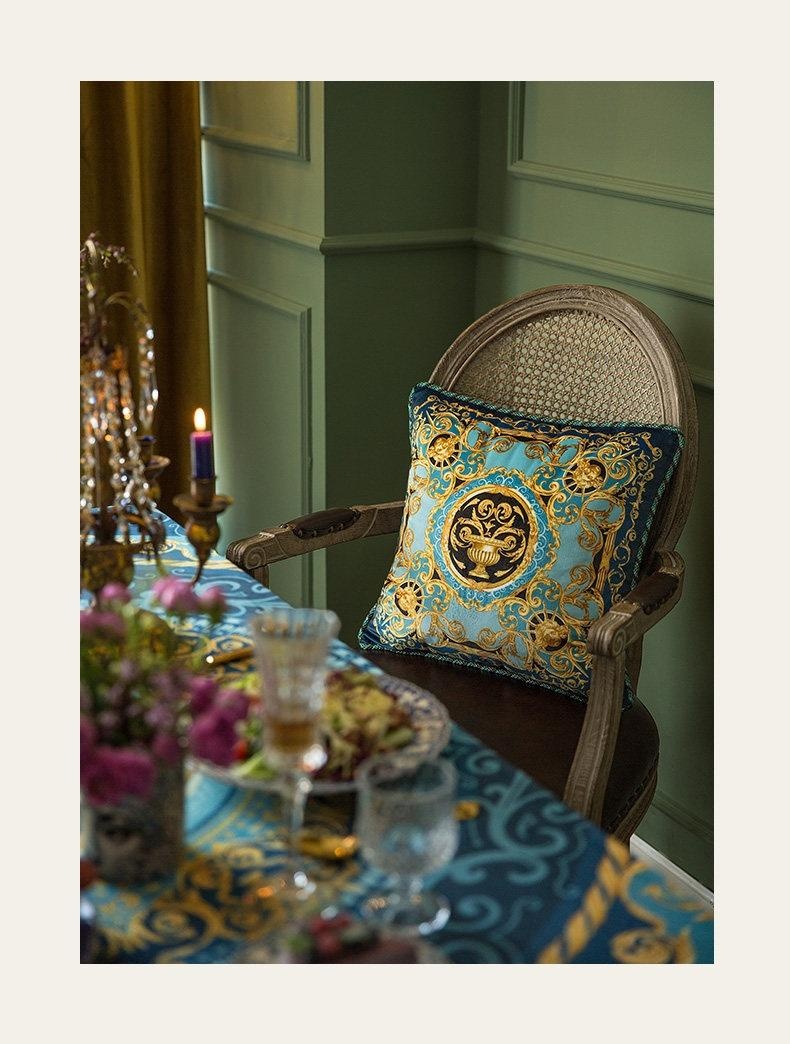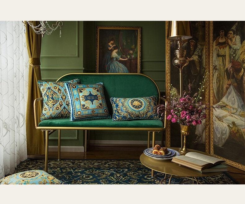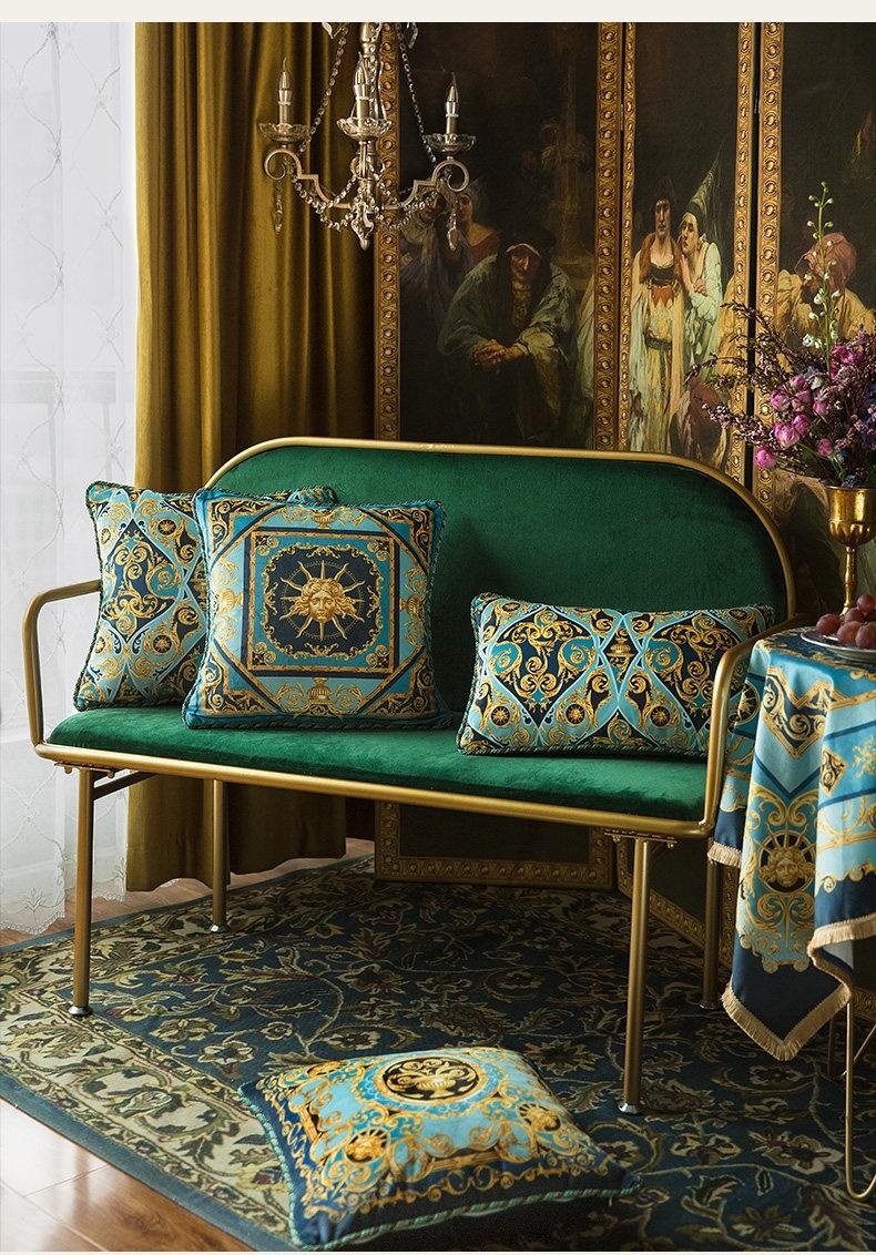Premium Fanju Attitude Blue Gold European Style High-End Throw Pillow Retro Light Luxury Cushion for Bed Head Sofa Office Pillow Cover Lumbar Pillow for modern lifestyles. Designed for comfort, durability, and everyday use. {‘Brand’: ‘Fanju Attitude’