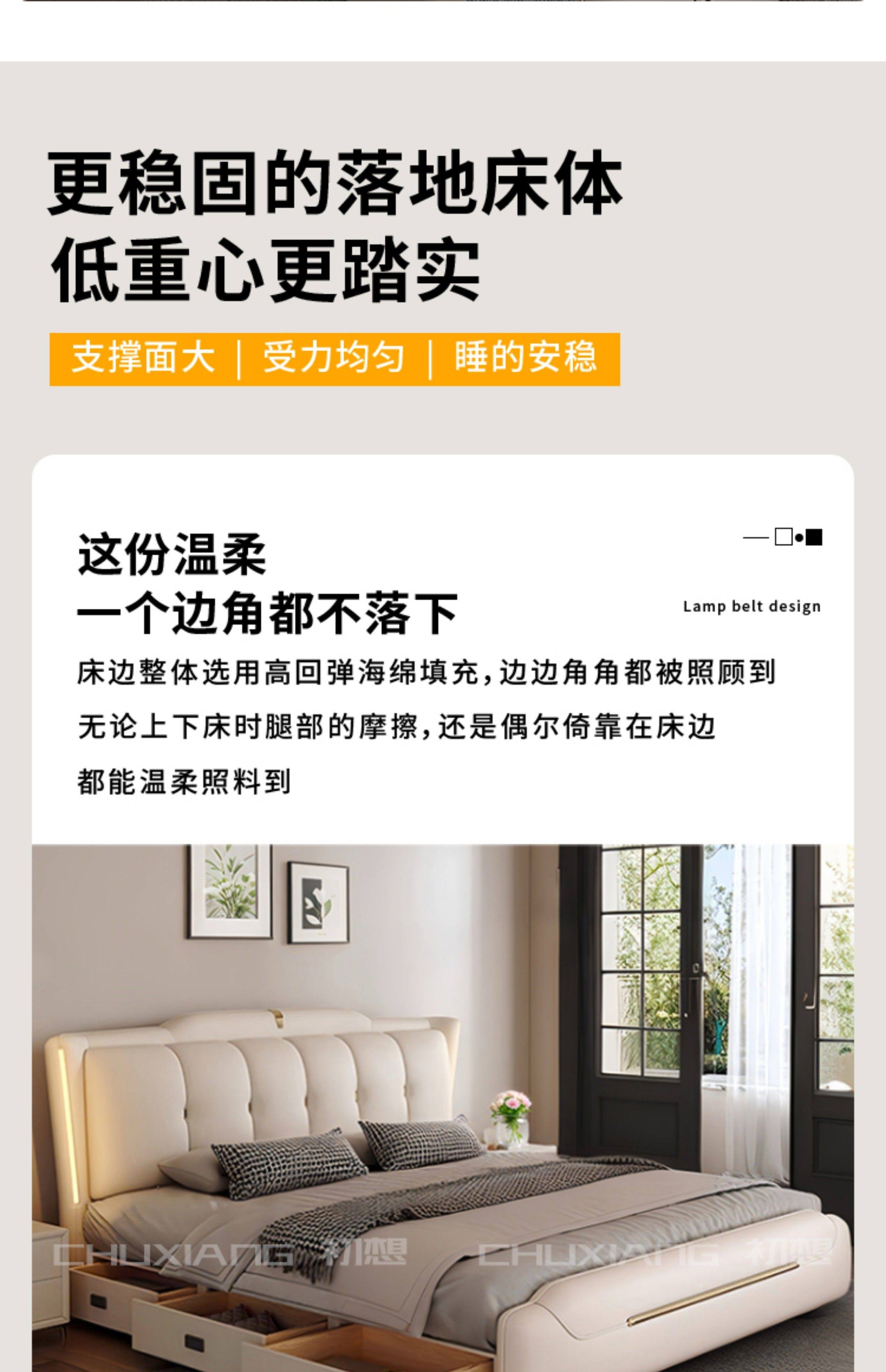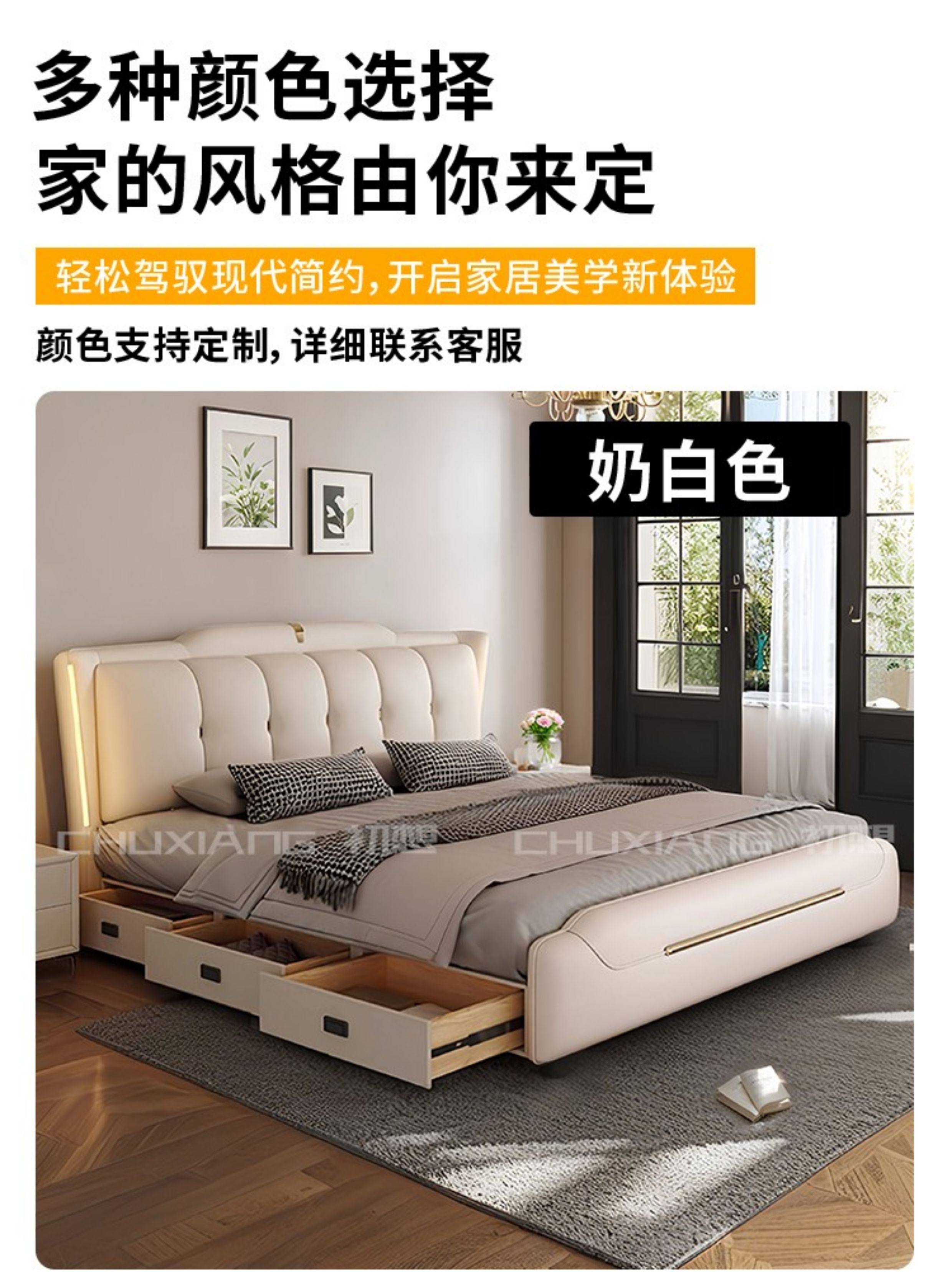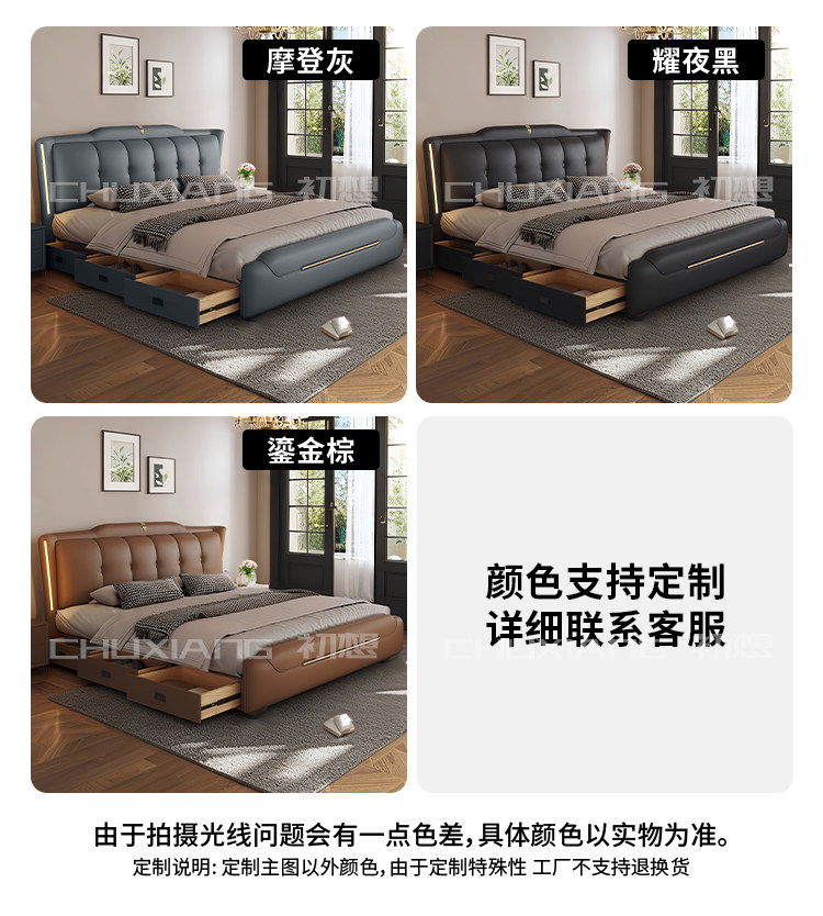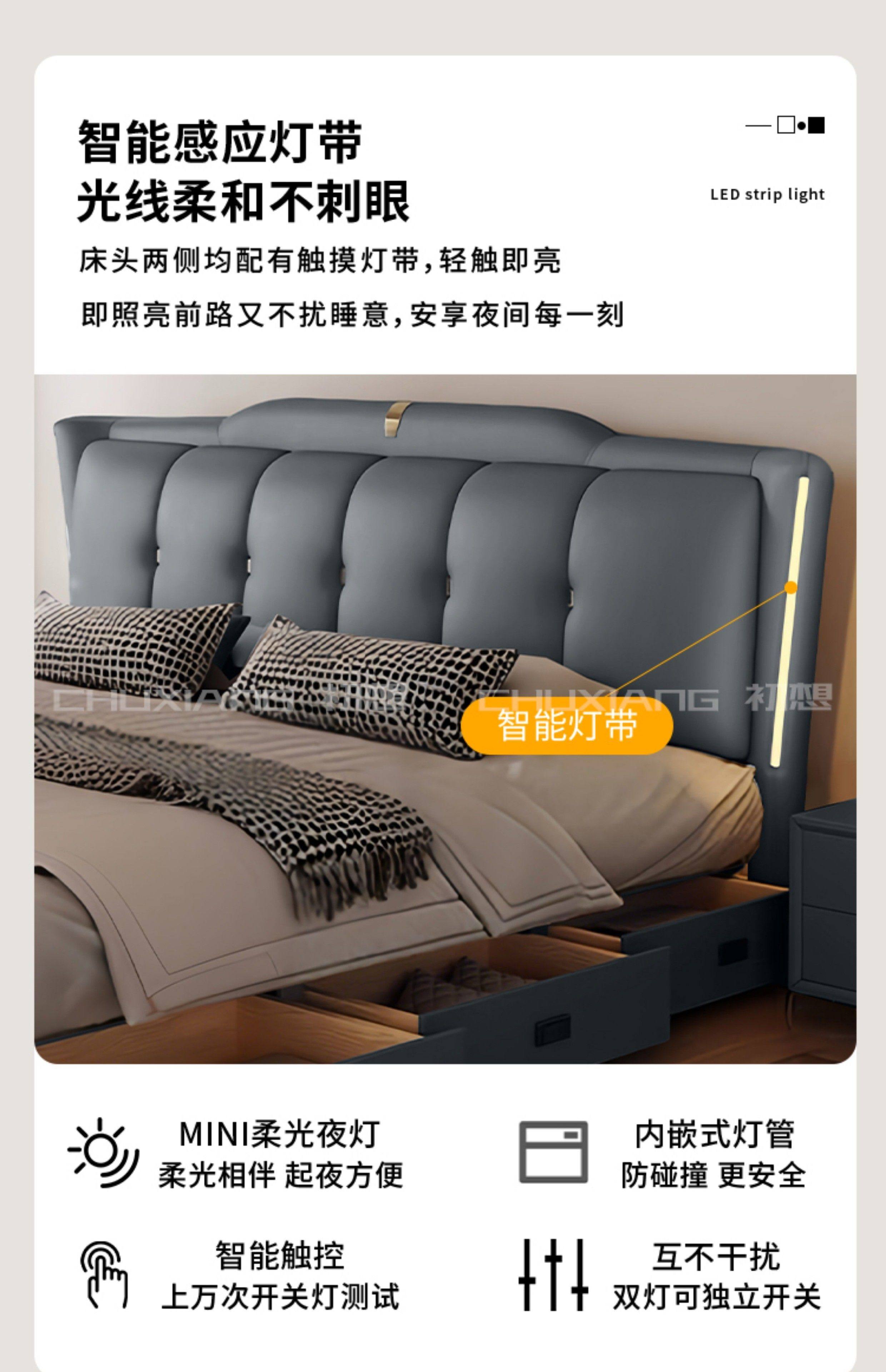 New Luxury Master Be – New Luxury Master Bedroom Light Strip Genuine Leather Bed Modern Minim