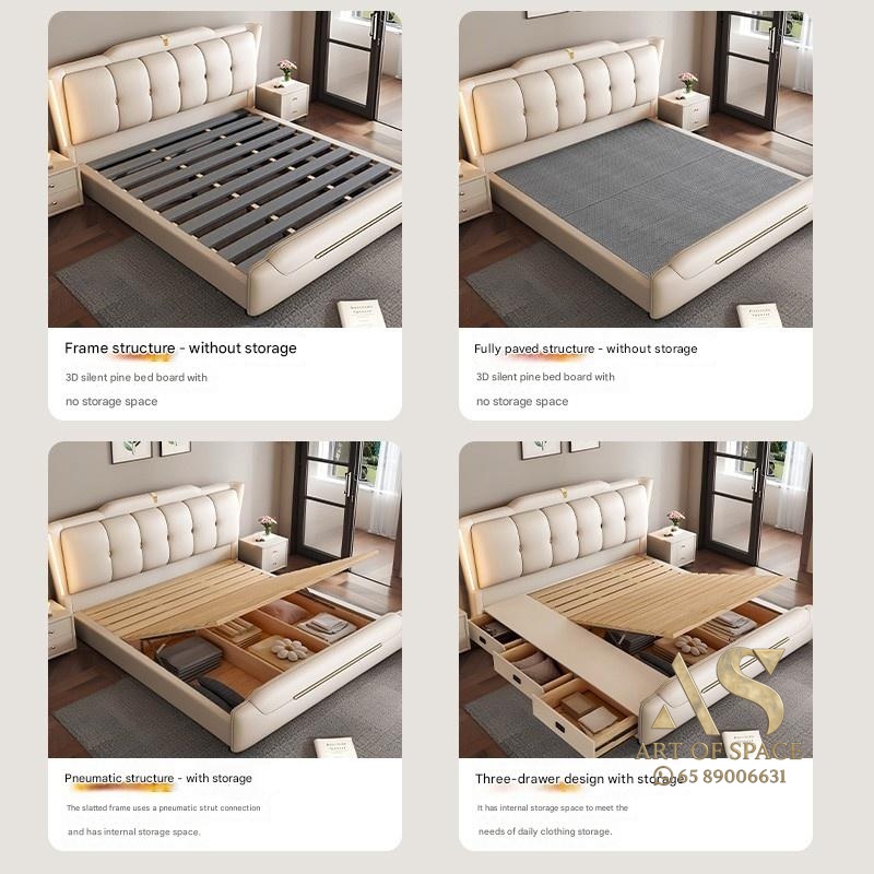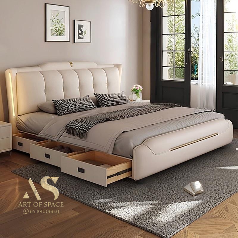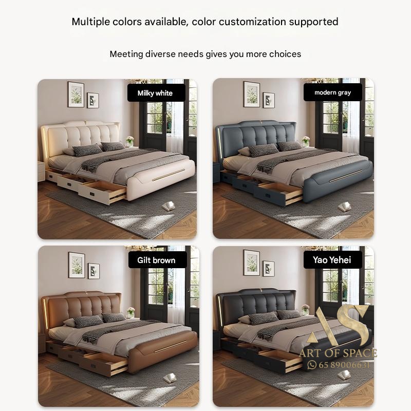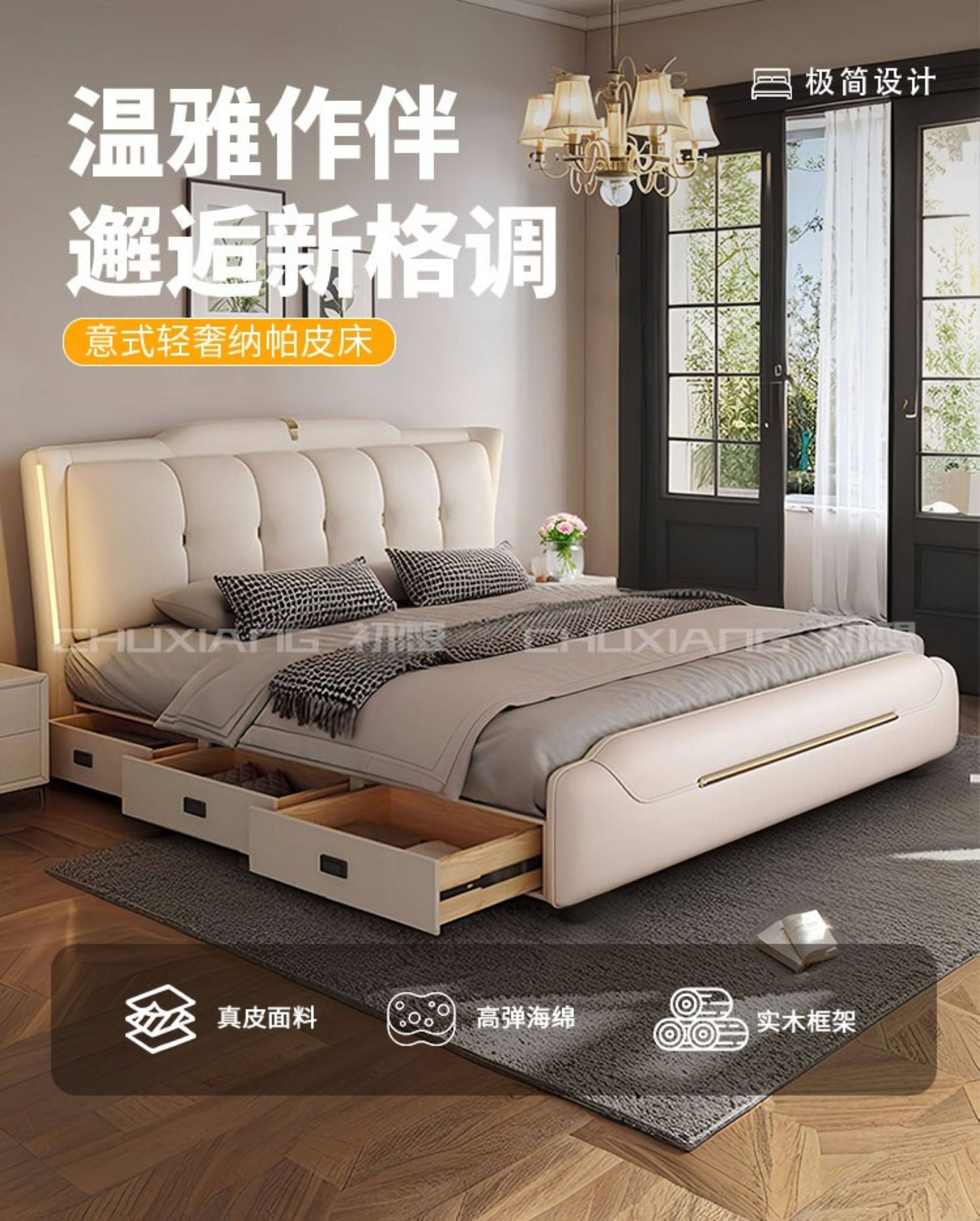 Transform your master bedroom with this luxurious leather bed featuring soft pack storage and modern minimalist design. Perfect for creating a cozy, stylish retreat, its elegant leather finish and thoughtful features offer comfort and sophistication. Elevate your space today.