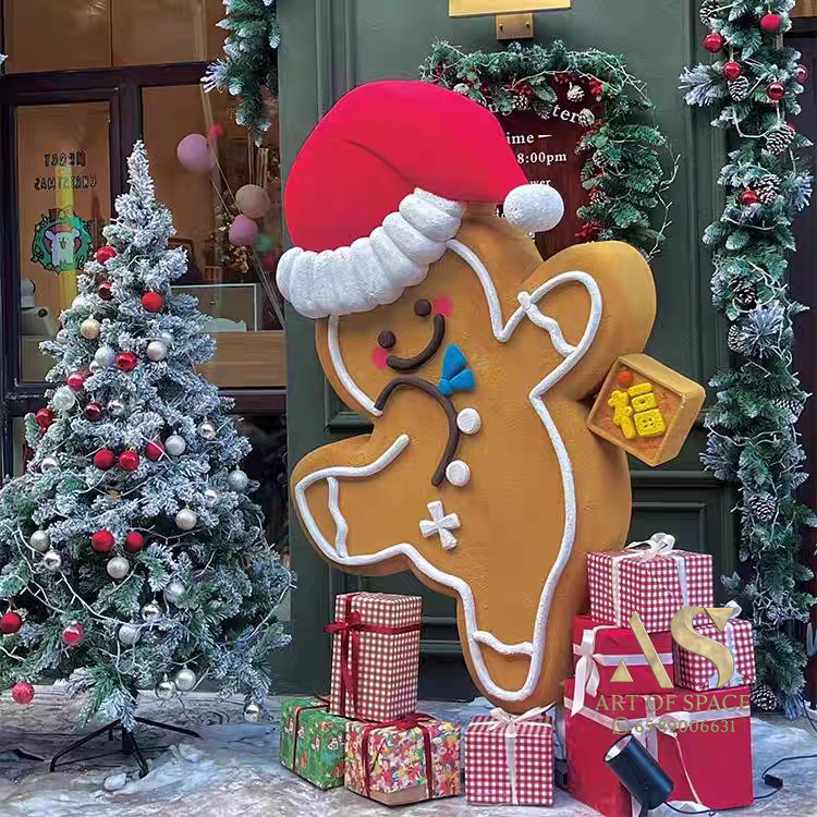 Add festive charm to your Christmas decor with this large foam gingerbread man and snowman sculpture. Perfect for creating warm holiday ambiance, its whimsical design brings joy and cheer to any space. Make your celebration memorable with this unique decorative piece.