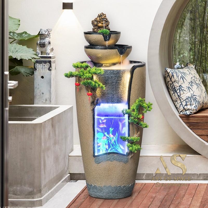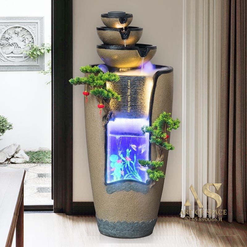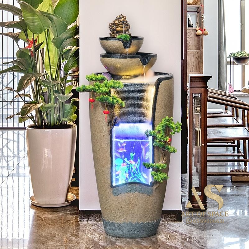 ZenFlow – New Chinese Style Flowing Water Feng Shui Ornament with Plan