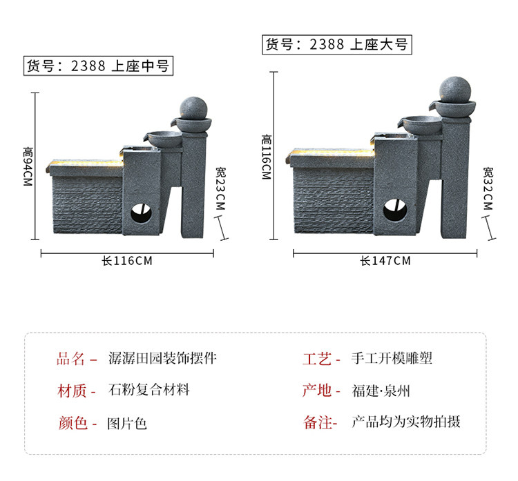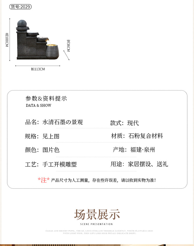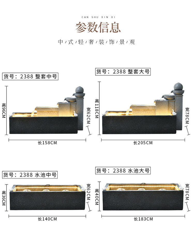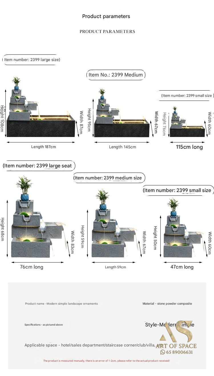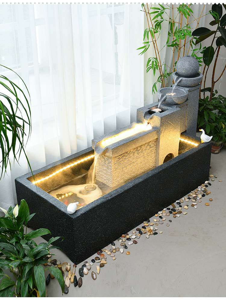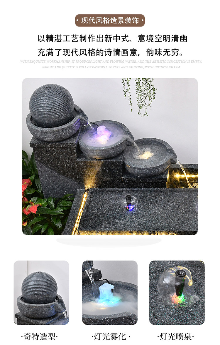 Bring tranquility to your space with our modern European-style flowing fountain, perfect for living rooms, courtyards, or hotel decor. Crafted from handmade stone powder material, it offers elegant illumination and a calming ambiance. Elevate your environment and embrace peaceful moments today.
