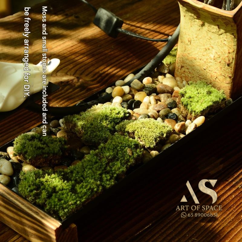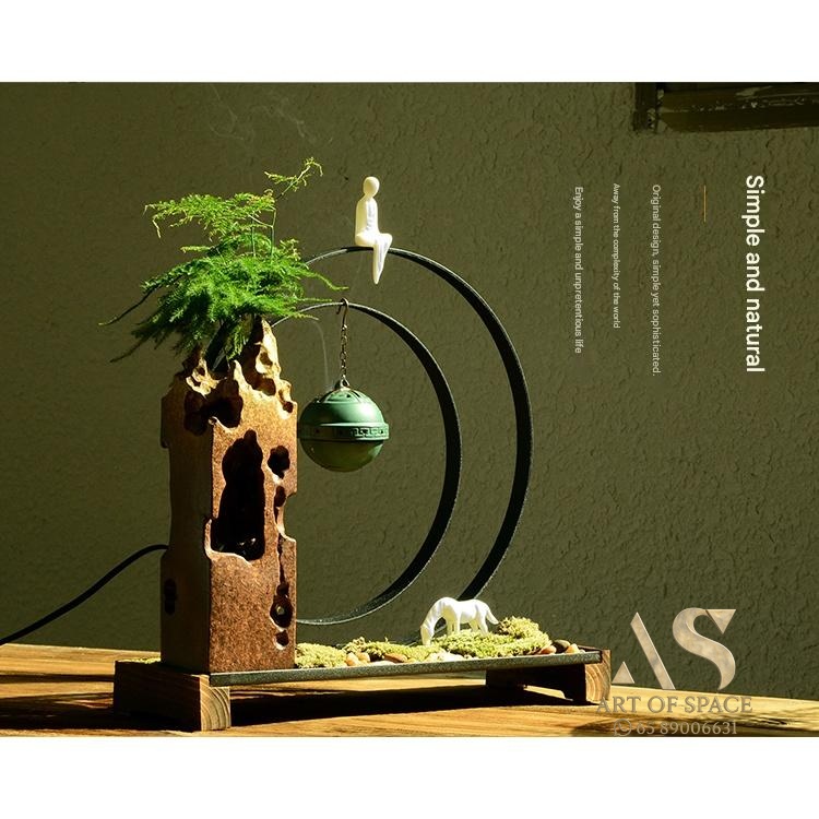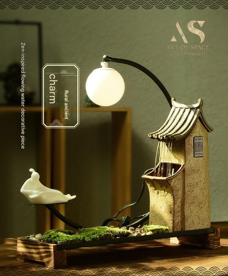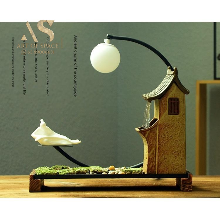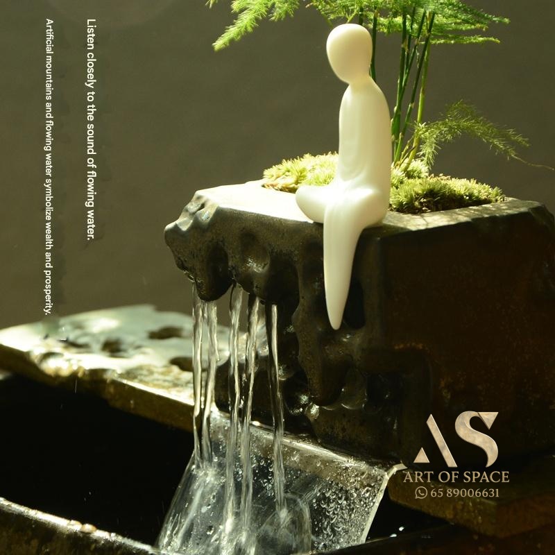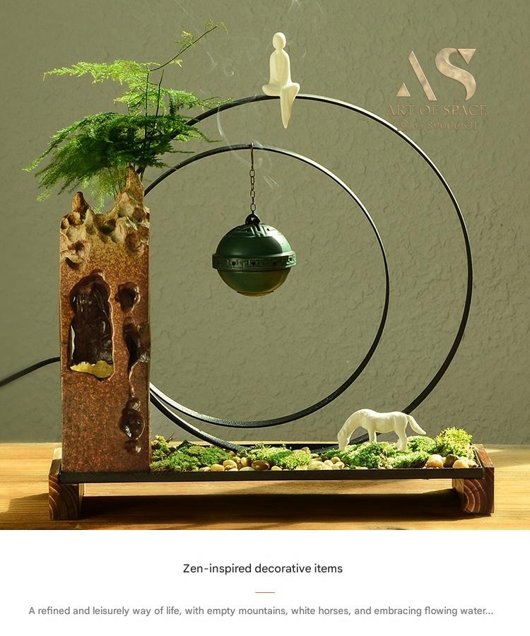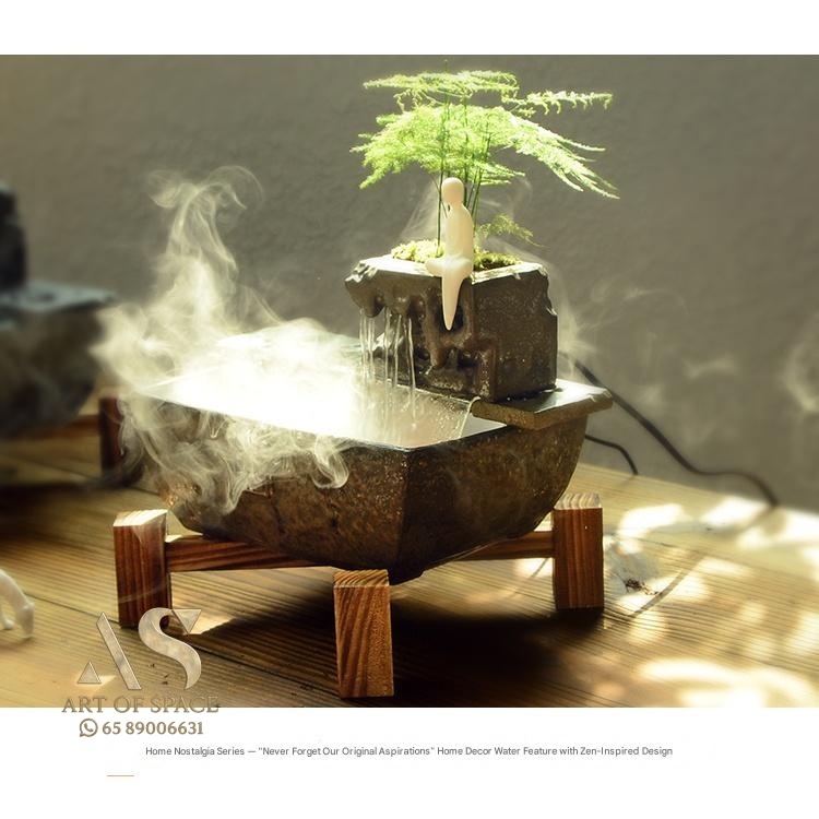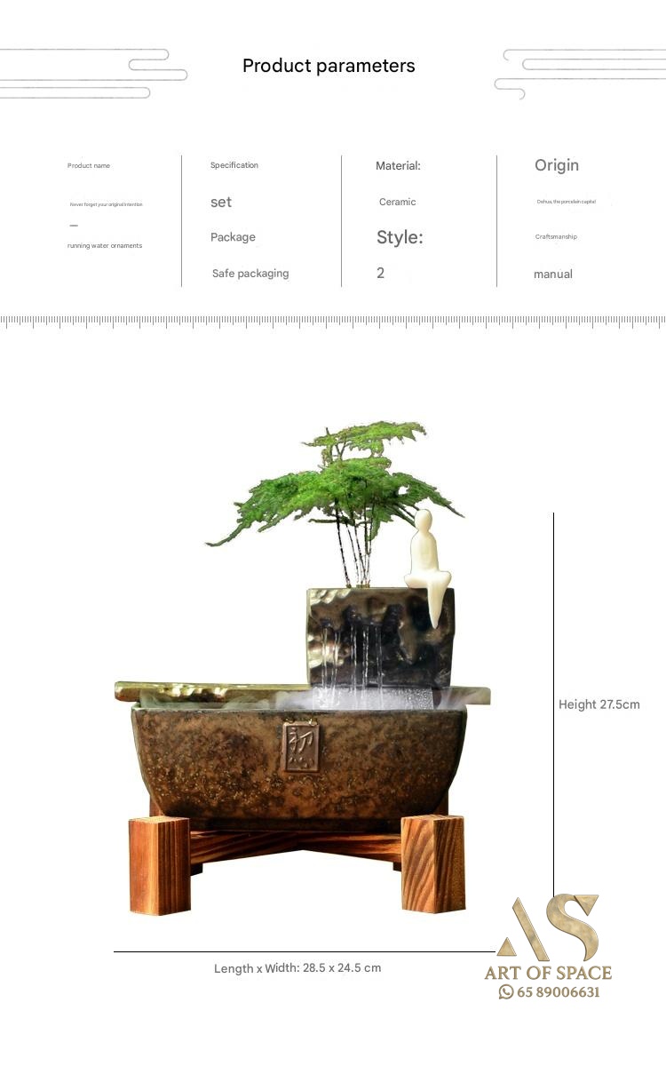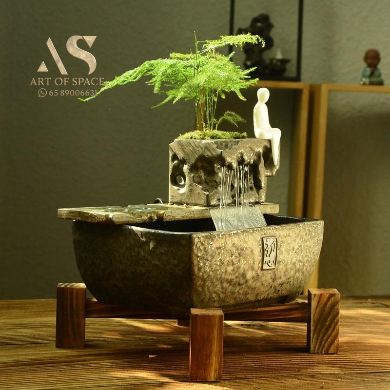 Experience the calming presence of a flowing water ornament that humidifies your air and creates a serene Zen atmosphere. Perfect for your desk or tea room, this handmade ceramic rockery features a gentle spray mist. Bring peaceful energy into your living space with this unique miniature landscape.
