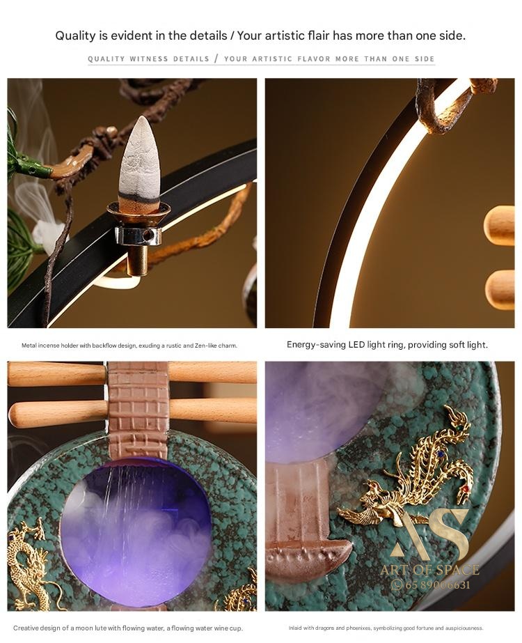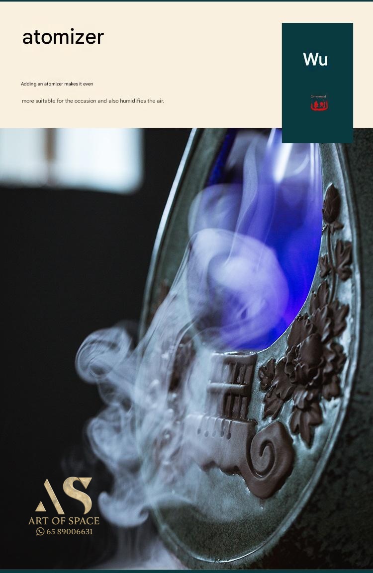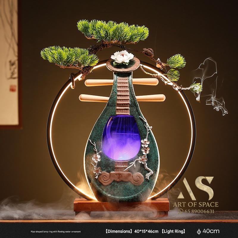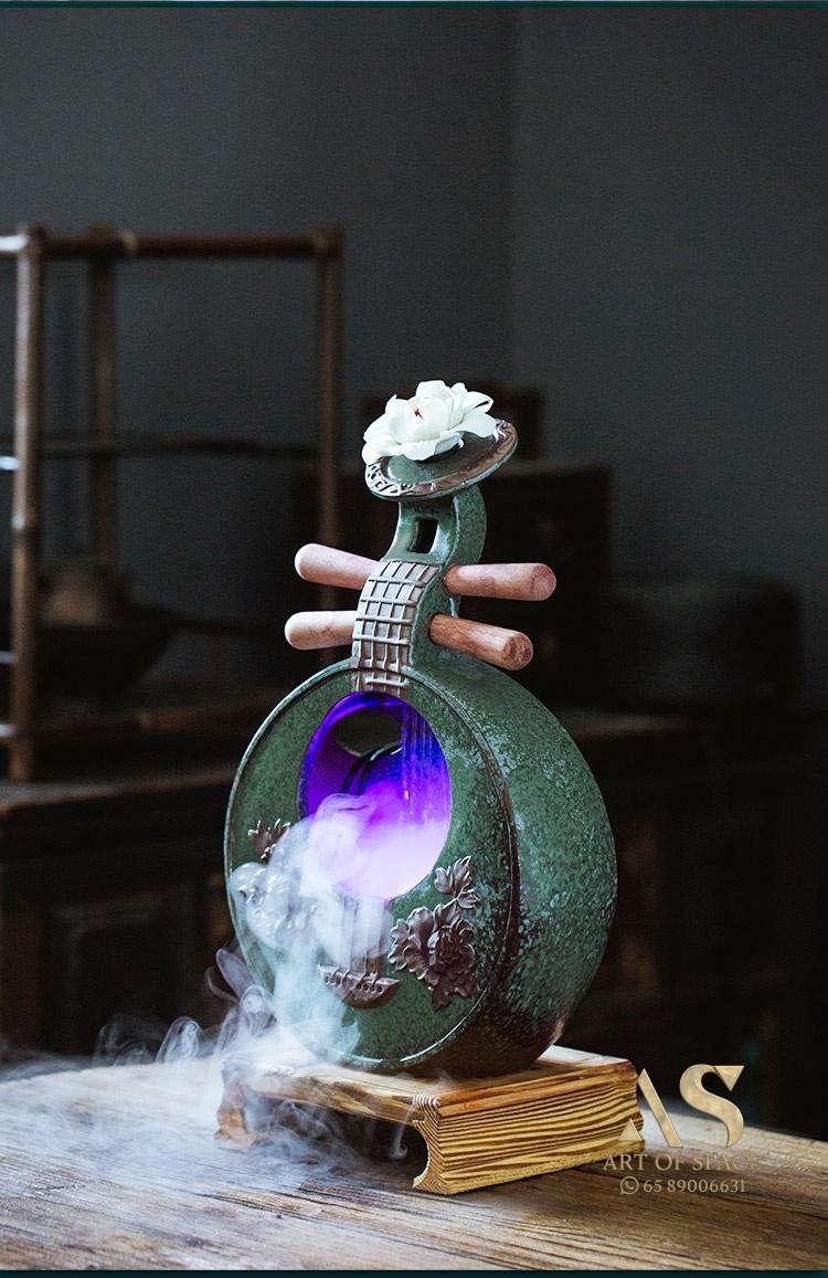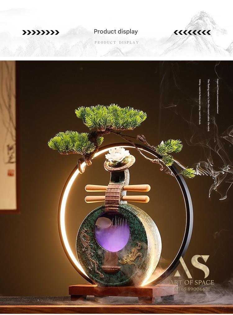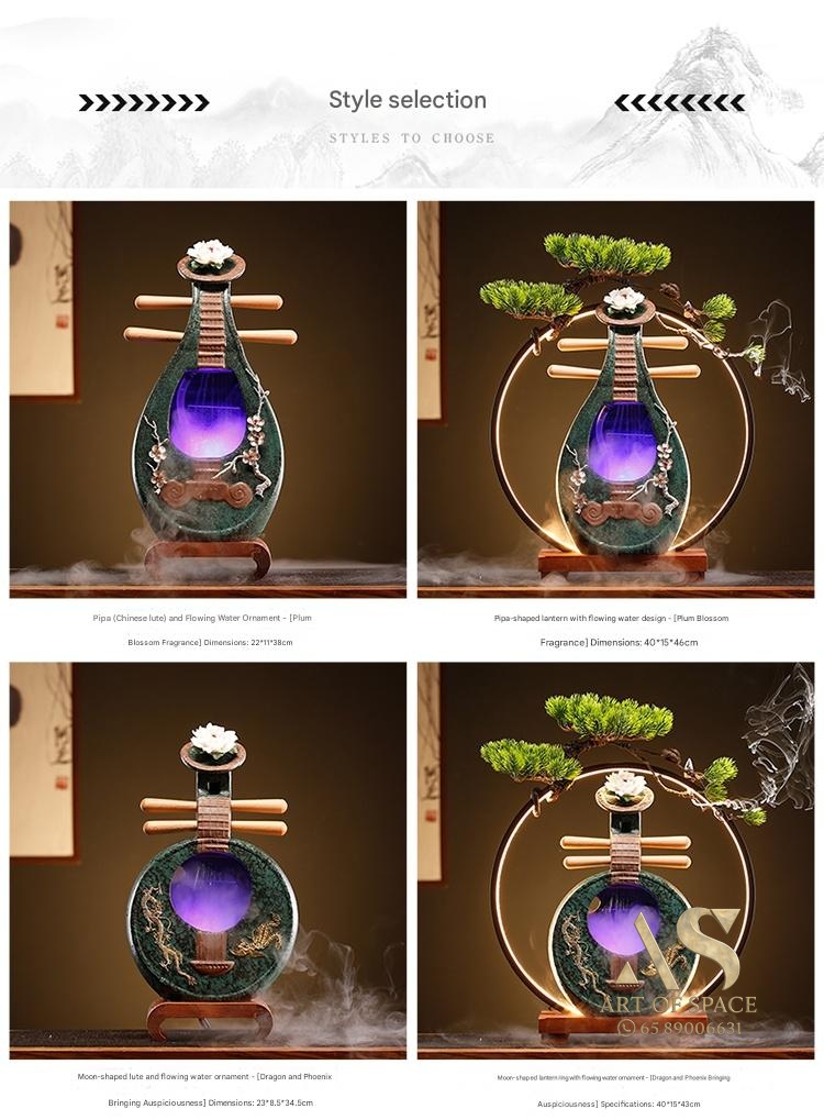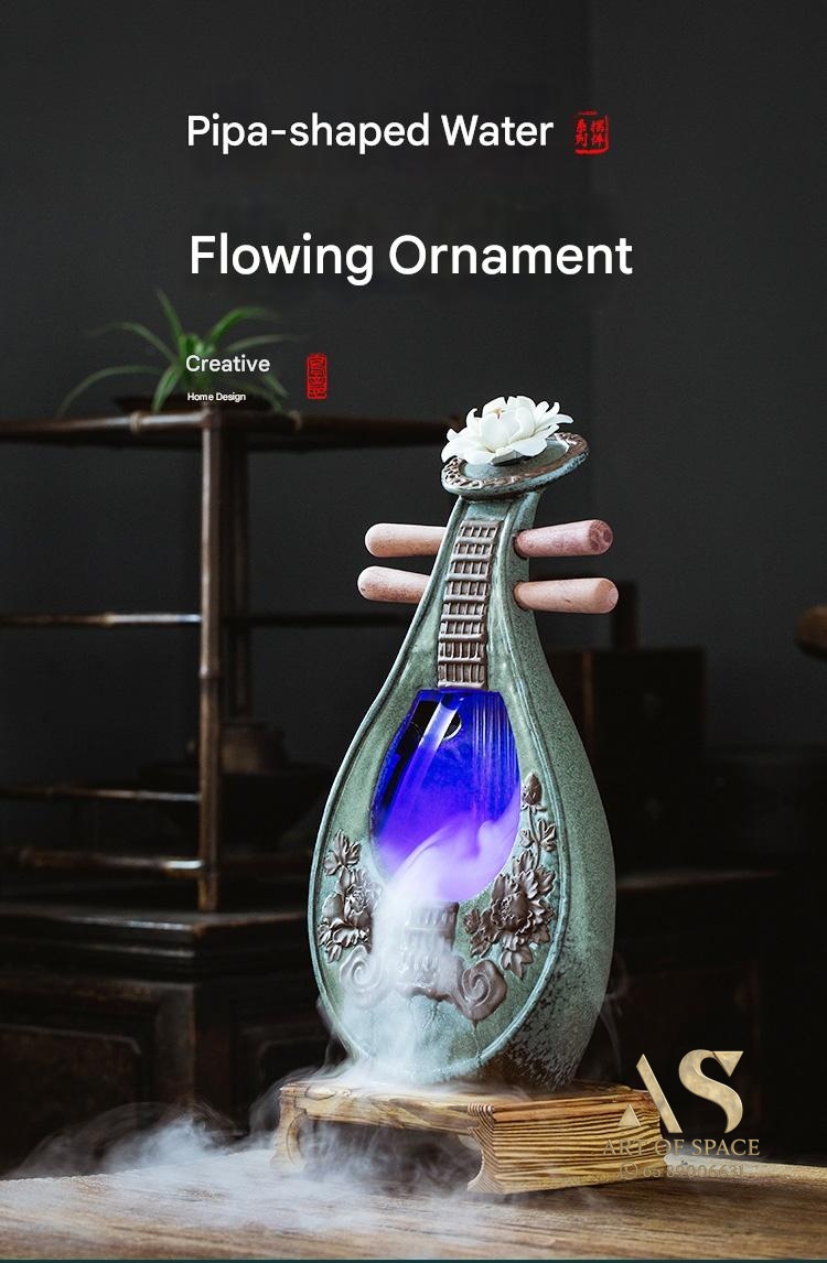Fuzelin – Chinese Ceramic Water Flow Ornament with Humidifier & LED Li