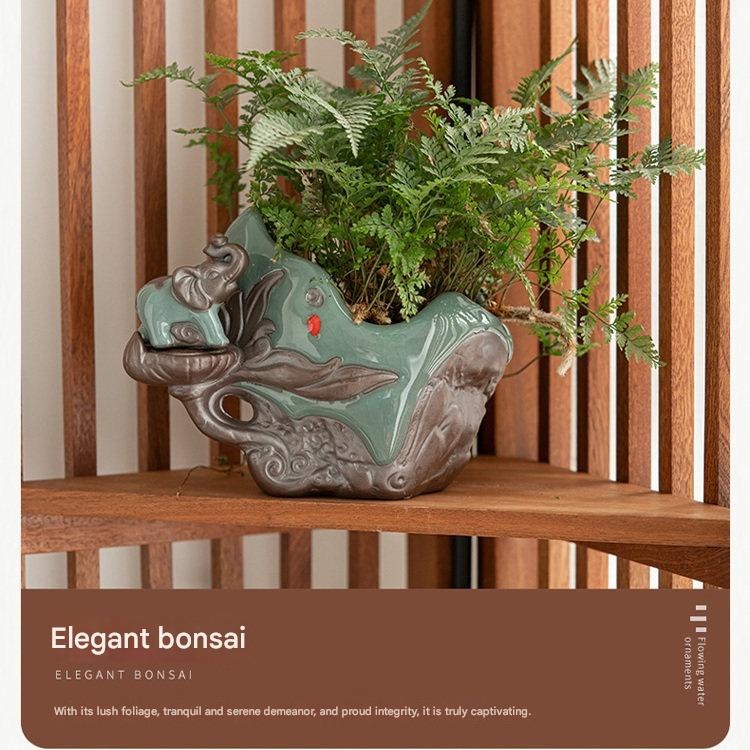 Fuzelin – Chinese Ceramic Water Flow Ornament with Humidifier & LED Li