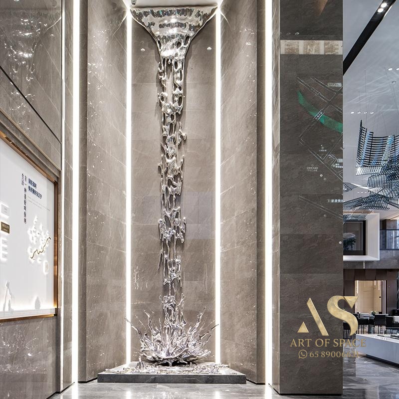 Jingyue – Large Waterfall Flow Wave Floor Art Installation Wall Decor