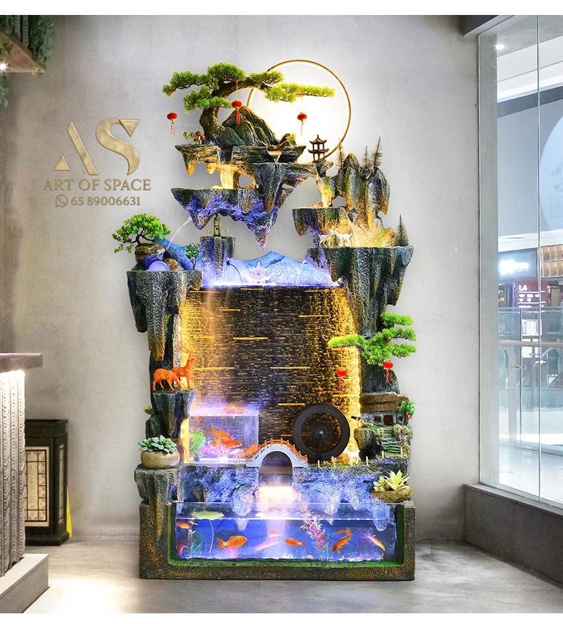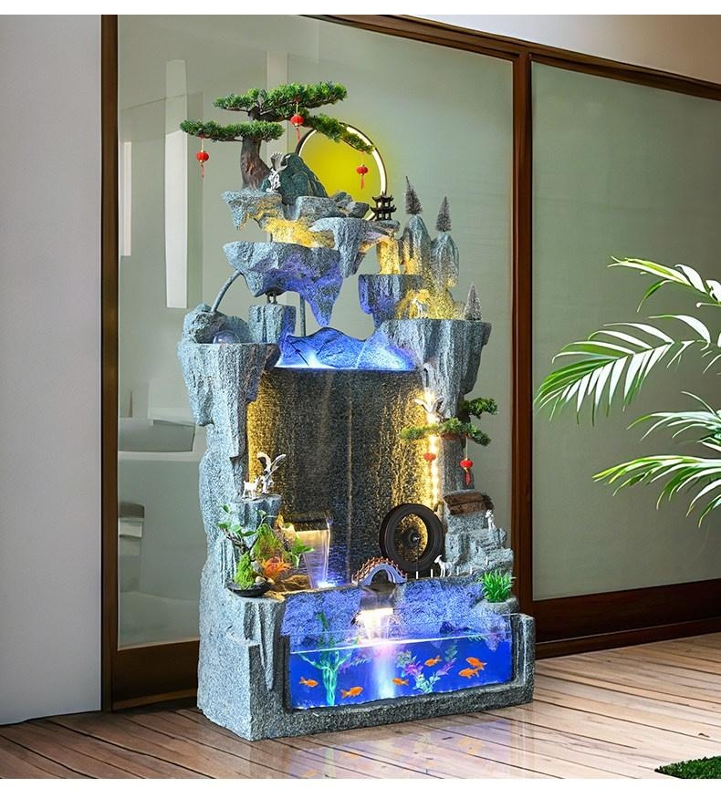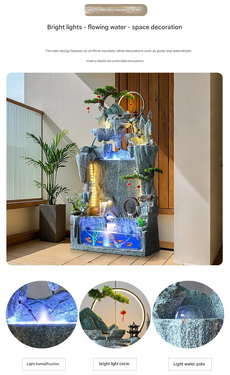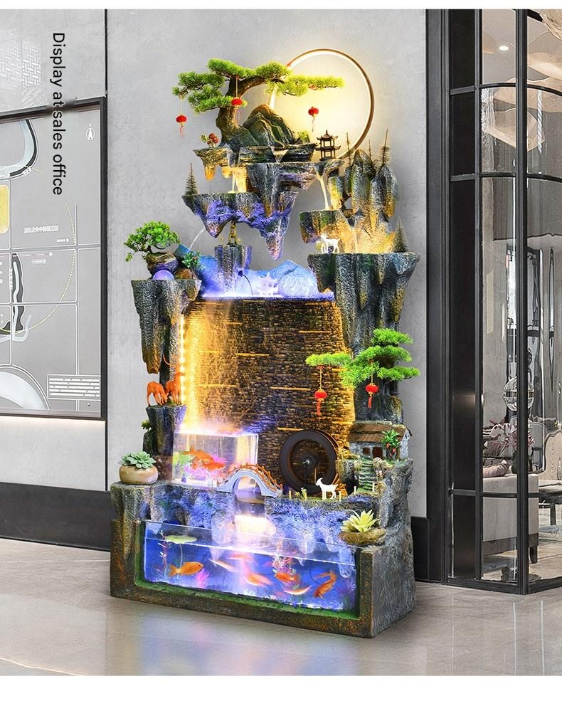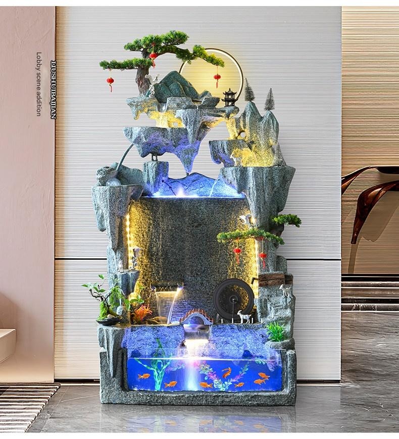 Premium Large Artificial Mountain Waterfall Fountain Curtain Fish Tank Ornament for Living Room TV Side Decoration, Wealth Attracting Business Opening Ceremony with Circulating Water for modern lifestyles. Designed for comfort, durability, and everyd