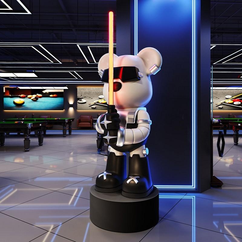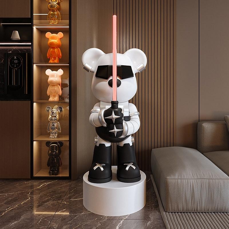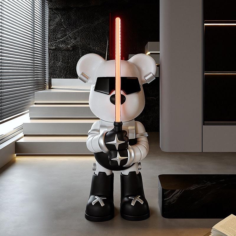Elevate your space with this striking lightsaber bear floor decoration. Its premium resin build and cool light-up feature create a bold, modern statement. Perfect for gifting or as a unique living room centerpiece, this trendy model adds personality and conversation-starting style to any home.