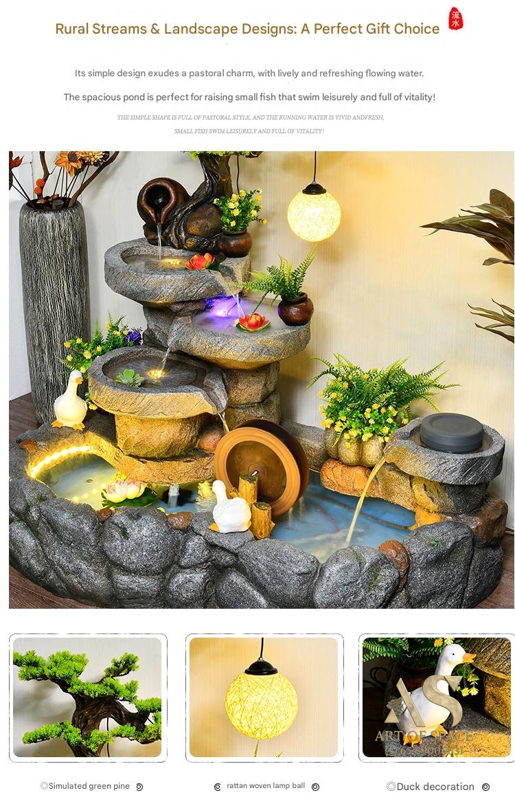 Premium Indoor Artificial Mountain Waterfall Wealth Fountain, Balcony Courtyard Outdoor Circulating Water System Fountain Landscape Decoration Floor-standing Fish Pond Ornament for modern lifestyles. Designed for comfort, durability, and everyday use