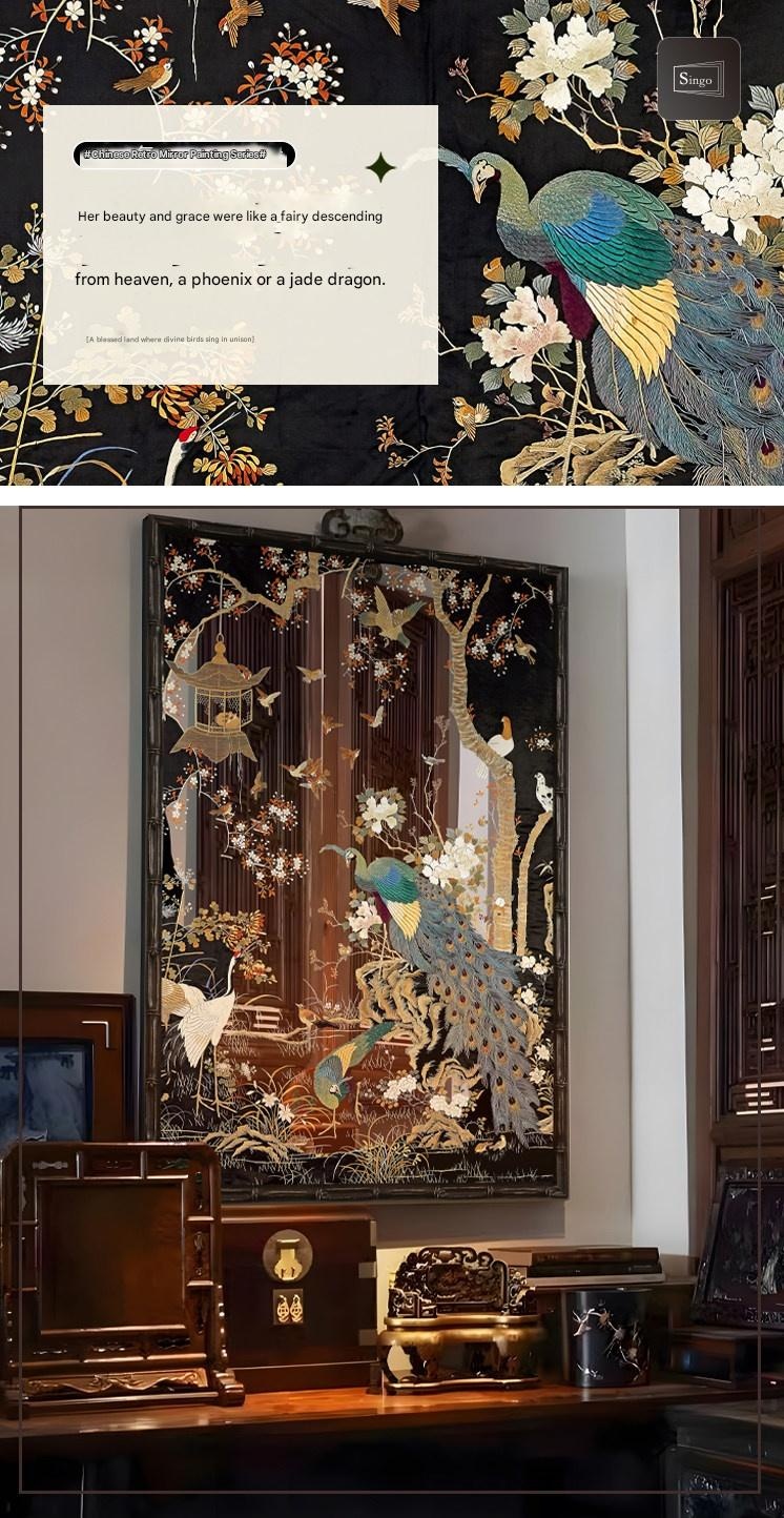 Enhance your living space with this elegant Chinese-style antique mirror featuring a stunning peacock design. Perfect for adding a touch of artistry and cultural charm, it creates a warm, inviting atmosphere. Enjoy a unique, handcrafted piece that reflects timeless beauty.