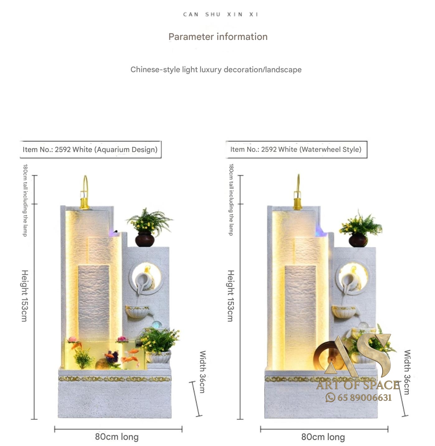 | Model | 2592 Large Black Fish Tank with Light & Fogger, 2592 Large Black Water Wheel with Light & Fogger, 2592 Large White Fish Tank with Light & Fogger, 2592 Large White Water Wheel with Light & Fogger, 2592 Small Black Fish Tank with Light & Fogger, 2592 Small Black Water Wheel with Light & Fogger, 2592 Small White Fish Tank with Light & Fogger, 2592 Small White Water Wheel with Light & Fogger, Prosperity Large Beige-Gray 62*45*158cm with Sprayer, Prosperity Large Black 62*45*158cm with Sprayer, Prosperity Medium Beige-Gray 52*38*133cm with Sprayer, Prosperity Medium Black 52*38*133cm with Sprayer, Prosperity Small Beige-Gray 40*30*102cm with Sprayer, Prosperity Small Black 40*30*102cm with Sprayer, Smooth Sailing Large Gray-Black 63*43*175cm with Sprayer, Smooth Sailing Large Gray-White 63*43*175cm with Sprayer, Smooth Sailing M Small Gray-Black 41.5*33*120cm, Smooth Sailing M Small Gray-White 41.5*33*120cm, Smooth Sailing Small Gray-Black 46*41*148cm with Sprayer, Smooth Sailing Small Gray-White 55*41*148cm with Sprayer |