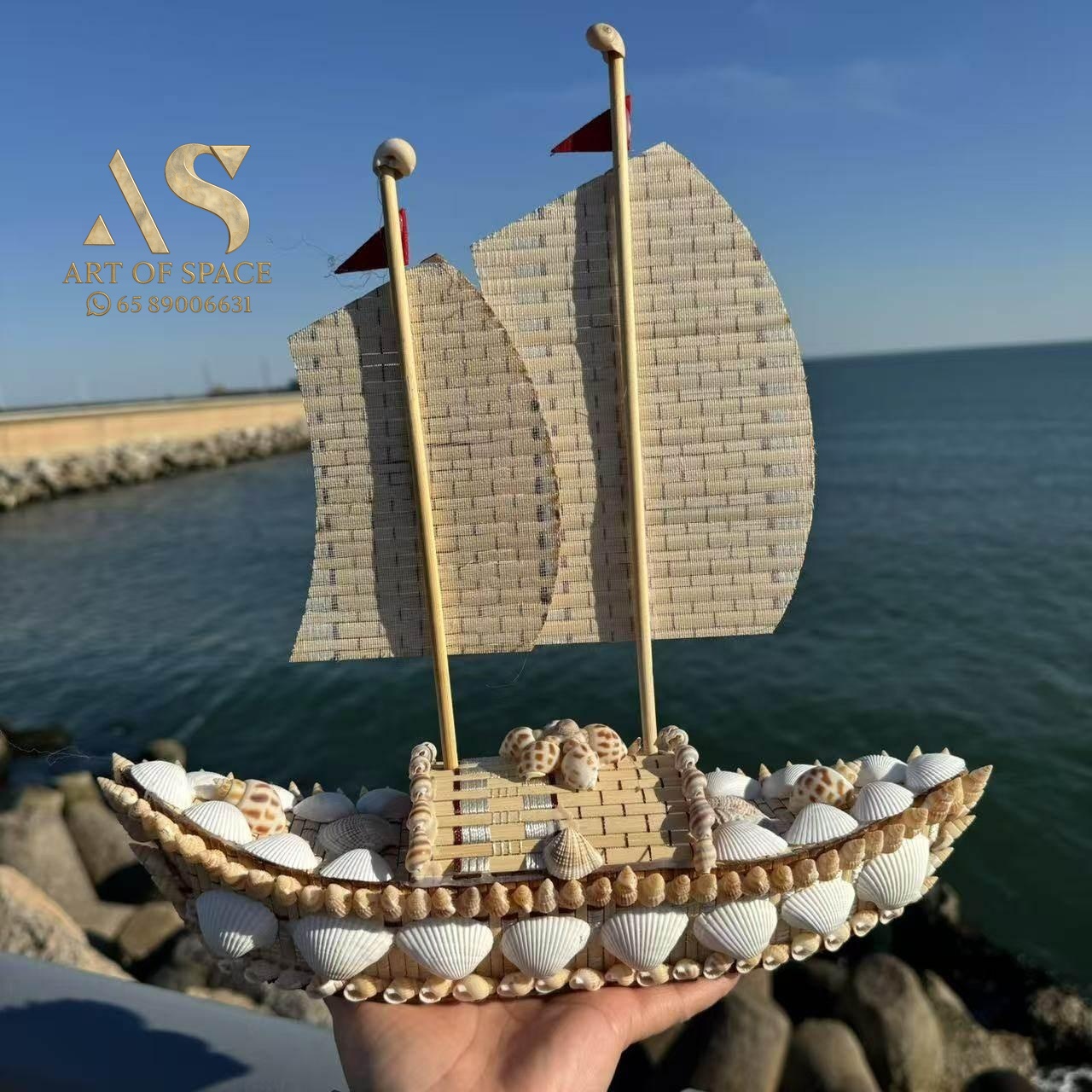 Seaside Shell Boat – Handcrafted Conch Sailboat Home Decor Souvenir