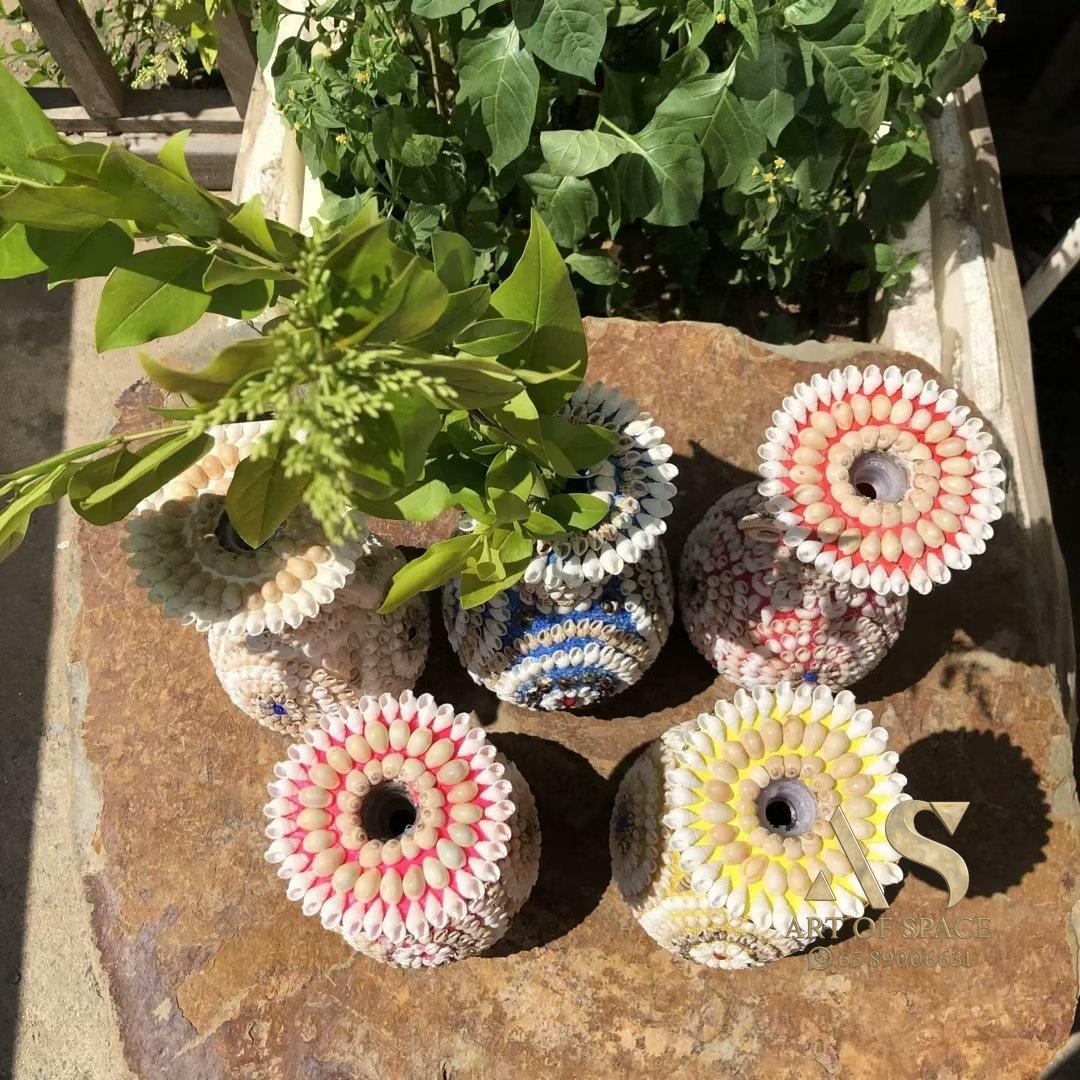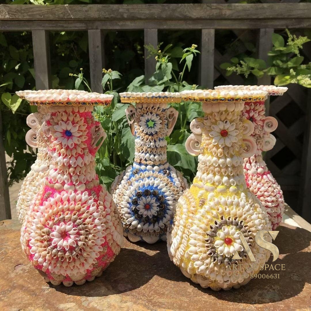Bring a touch of coastal serenity to your home with this beautiful seashell vase. Its unique conch shape and handcrafted charm make it a perfect gift or a delightful accent for any room. Elevate your space with this Mediterranean-style ornament.