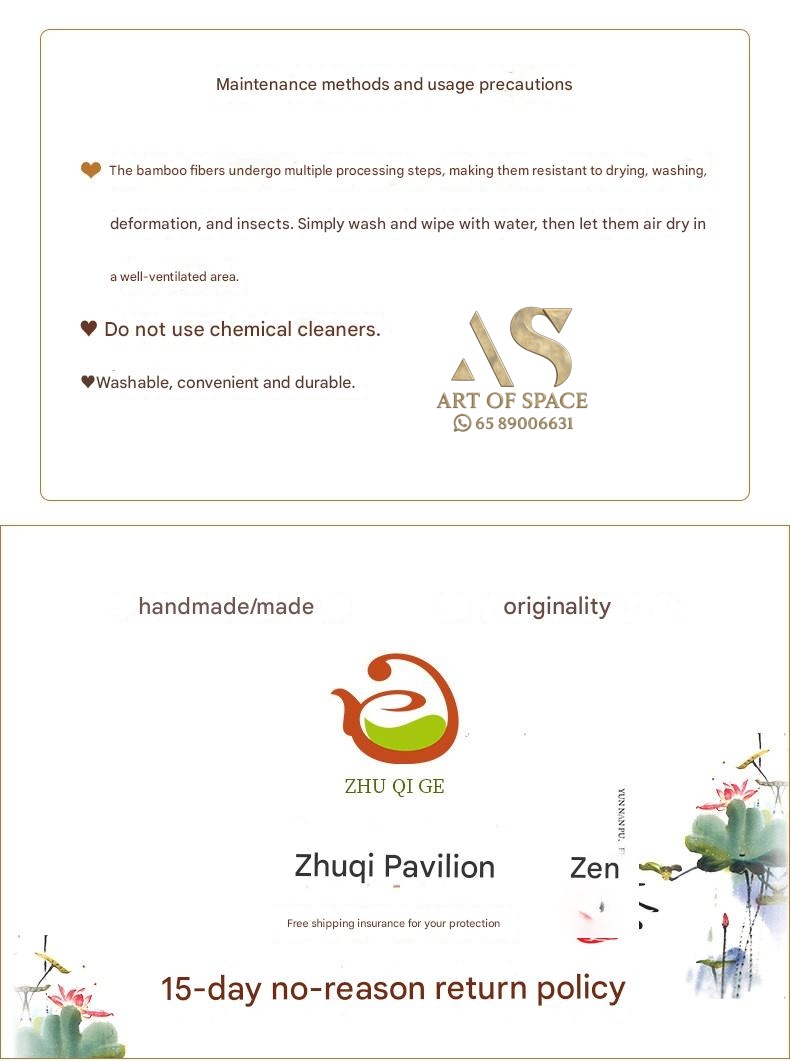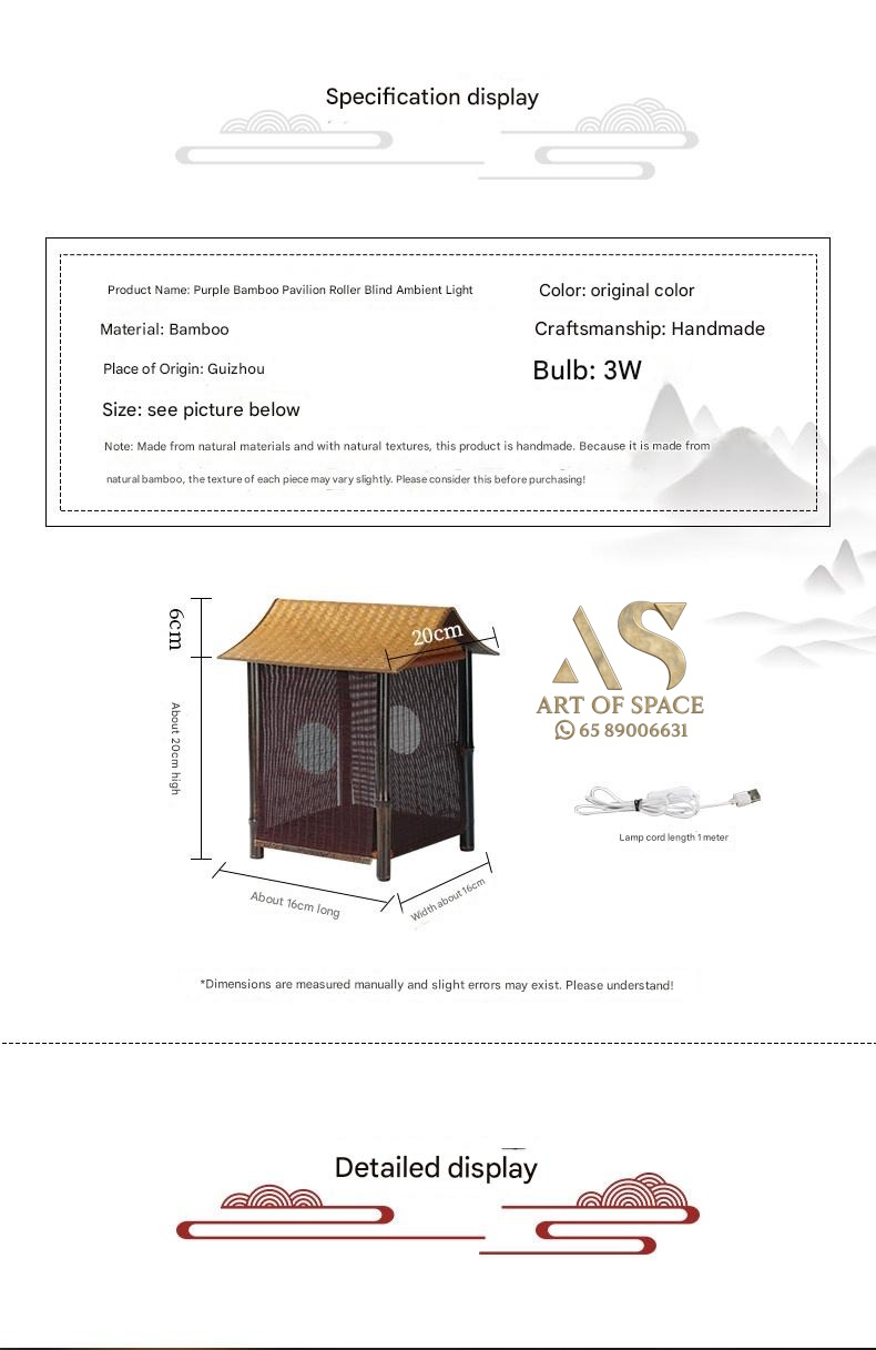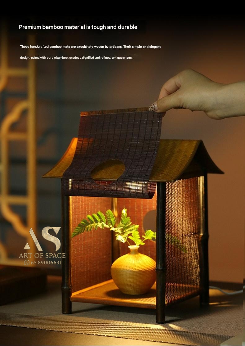 Create a calming ambiance with the Zhuzhi Pavilion handmade bamboo lamp, perfect for tea rooms or cozy spaces. Its elegant purple bamboo design offers natural warmth and a tranquil atmosphere, making every moment special. Bring harmony and aesthetic appeal to your home today.