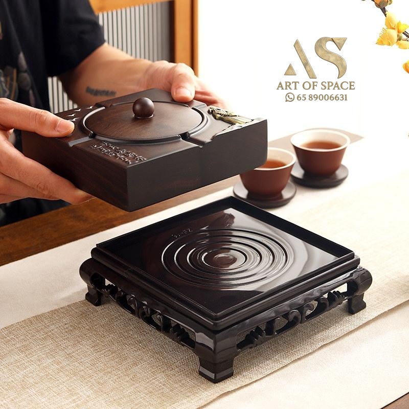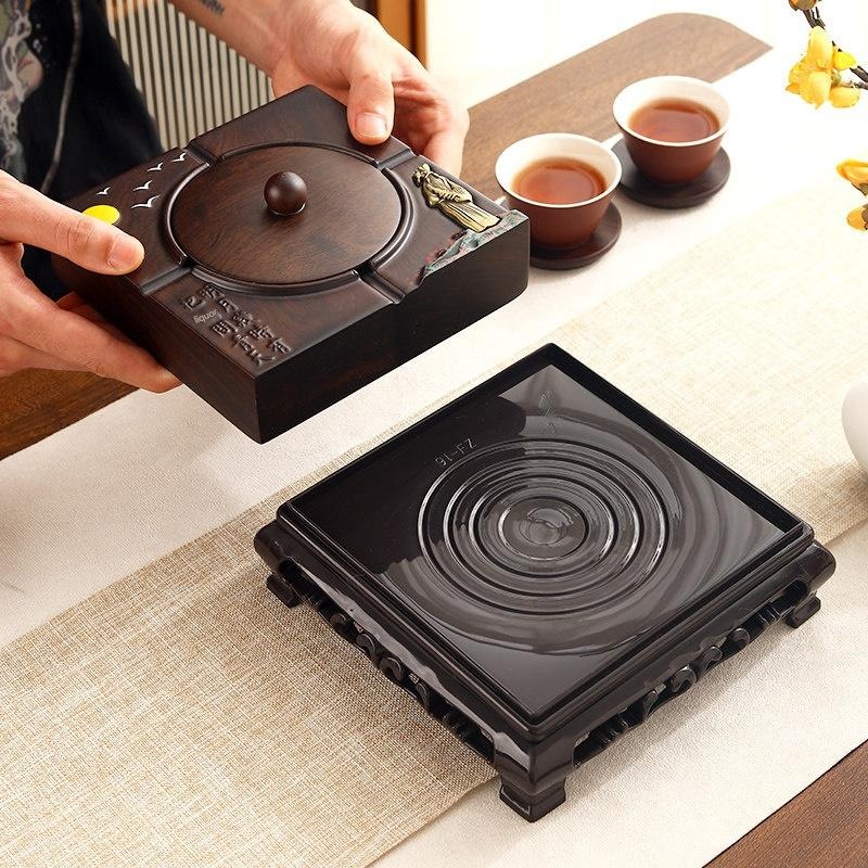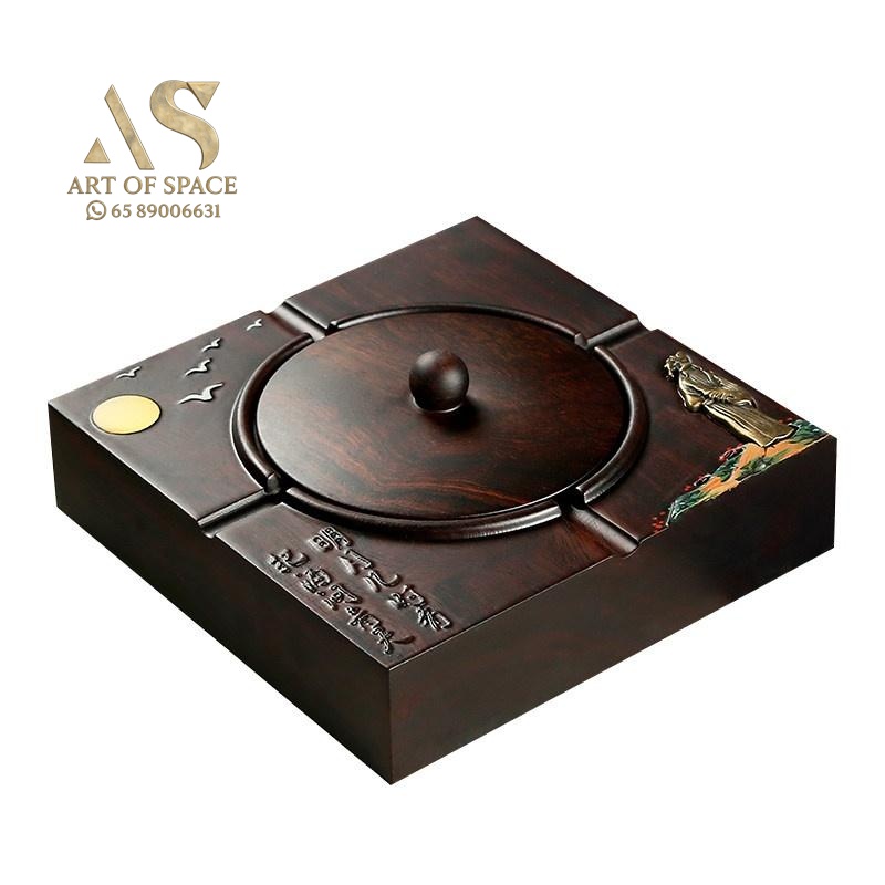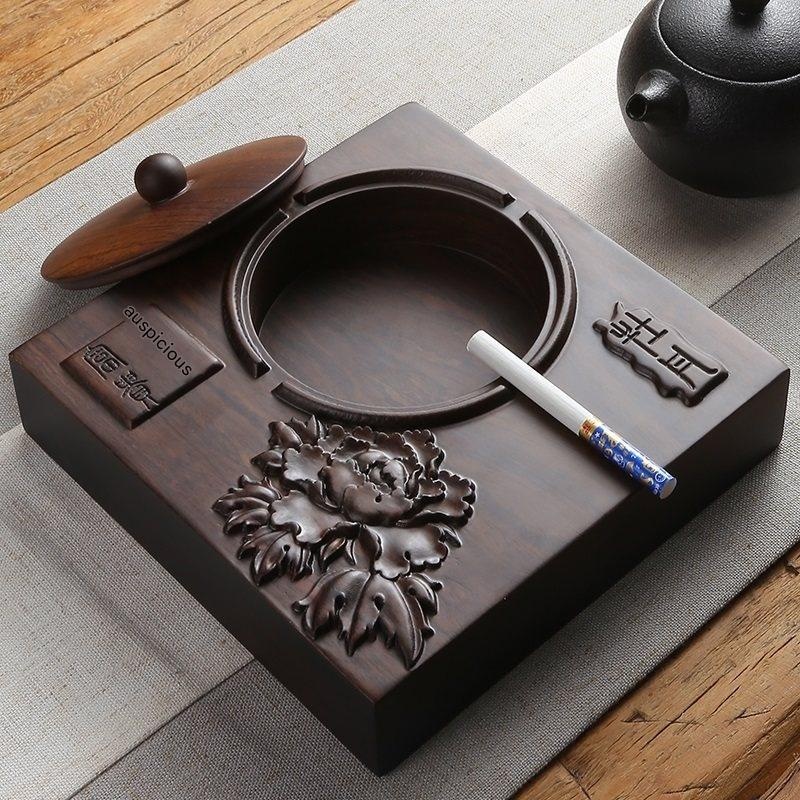 Wansijian – Ebony Wood Ashtray with Lid, Windproof Retro Chinese Style