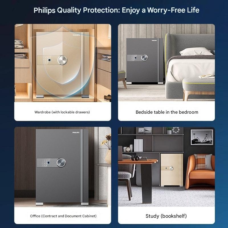 Secure your valuables with instant fingerprint access, backed by a robust 8mm steel body and multiple opening methods. This Philips electronic safe is perfect for home or office, offering certified peace of mind. Feel confident knowing your most important items are protected.
