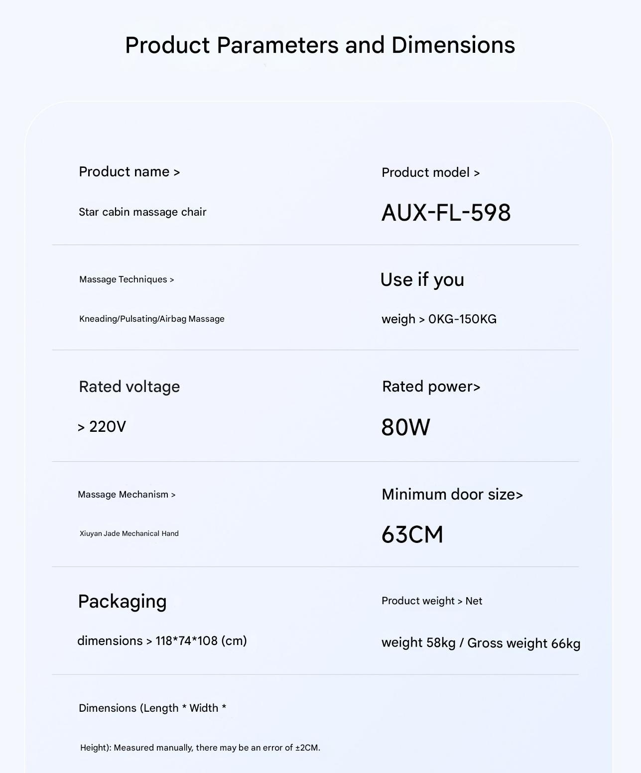 AUX – Full Function Home Massage Chair with Smart Control & Heat Thera
