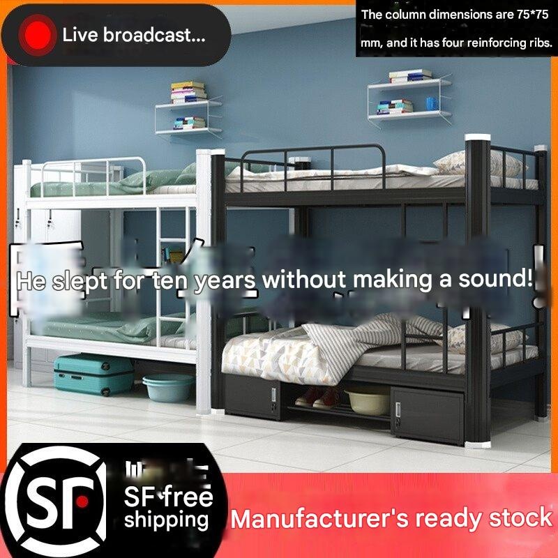 Maximize your space with this incredibly sturdy double-layer iron bunk bed. Its foldable design and built-in storage make it perfect for students, renters, or dormitories. Enjoy lasting peace of mind with a robust 5-year warranty and create your ideal sleeping arrangement today.