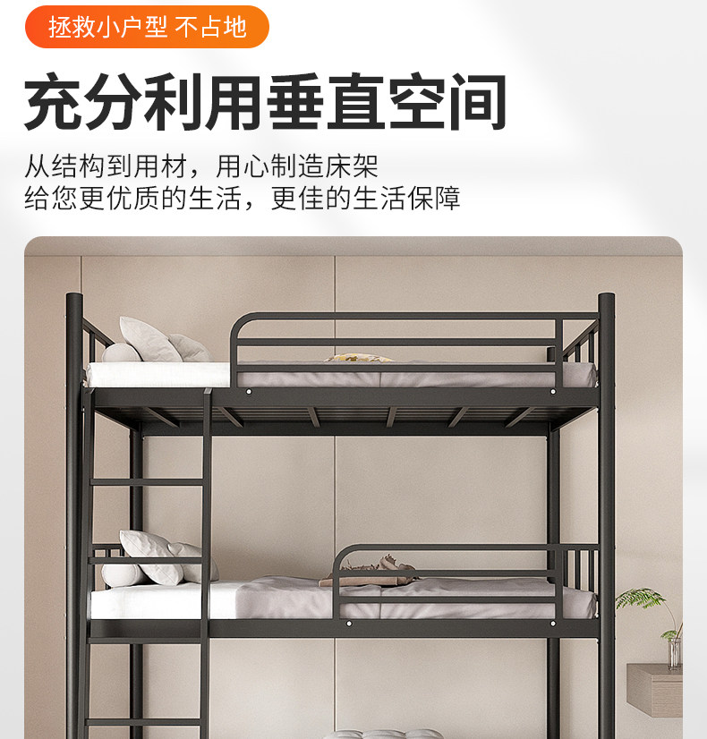 Xiangjinyuan – Custom Iron Art Bunk Bed with Storage & Guardrail
