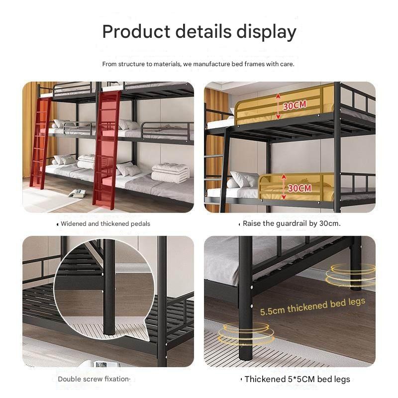 Puoulang – Reinforced Iron Bunk Bed with Storage, 1000kg Load, 1 Year