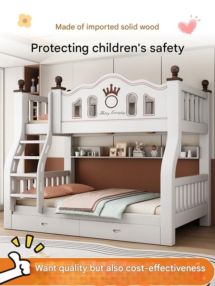 Fenlisi – Solid Wood Bunk Bed with High Guardrail & Storage Options