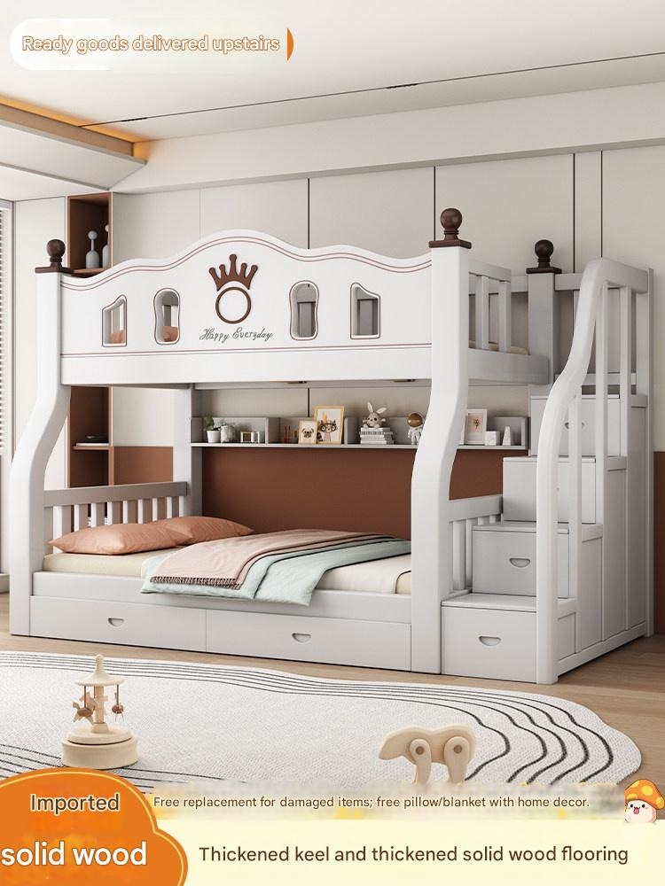 Fengdong – Solid Wood Bunk Bed with Trundle & Storage, Kids Room Furni