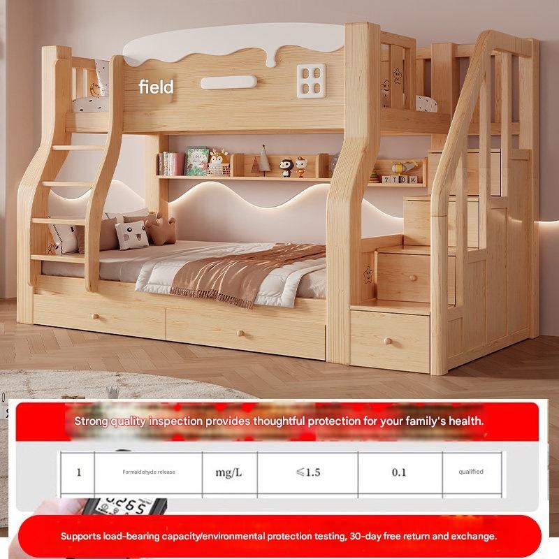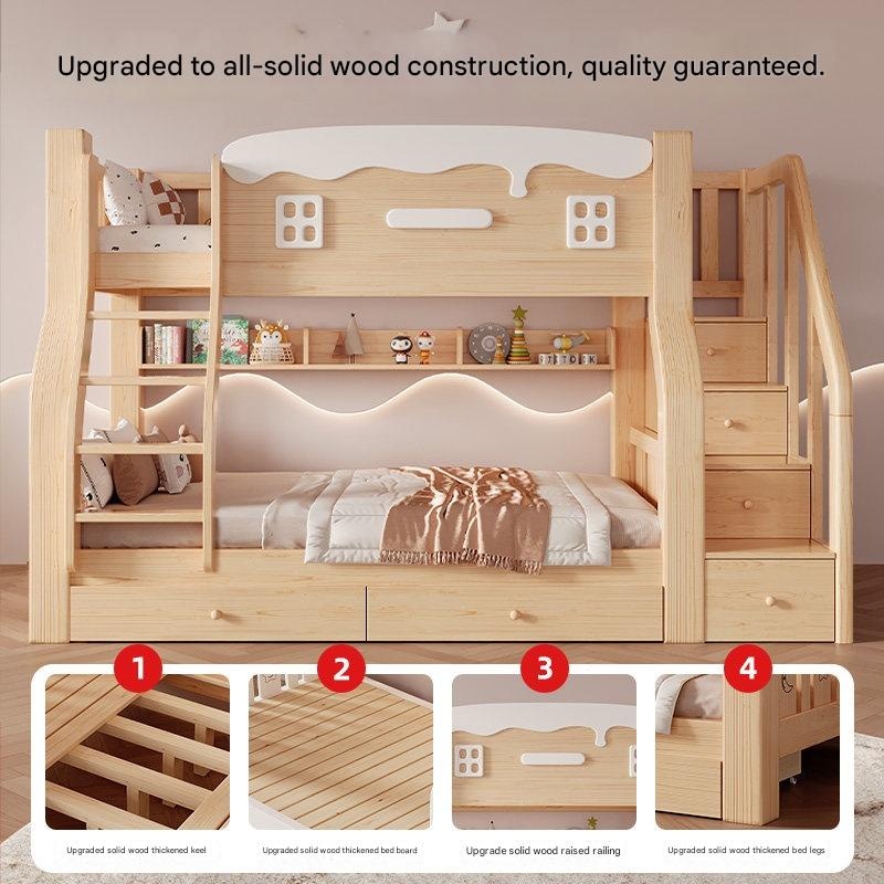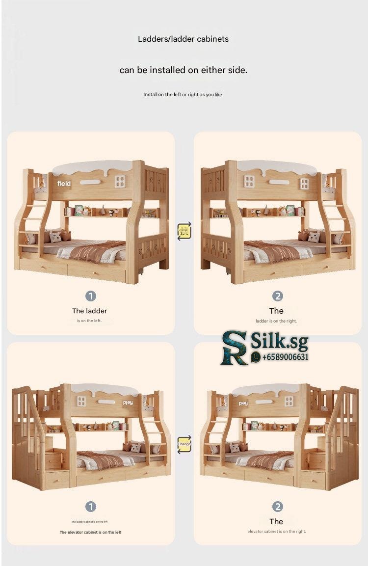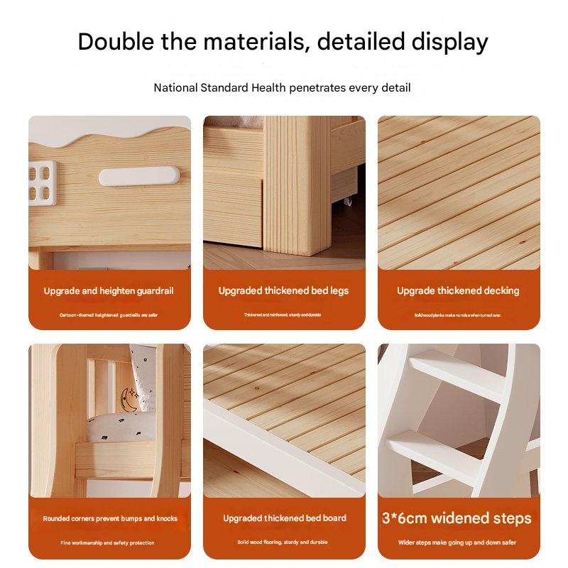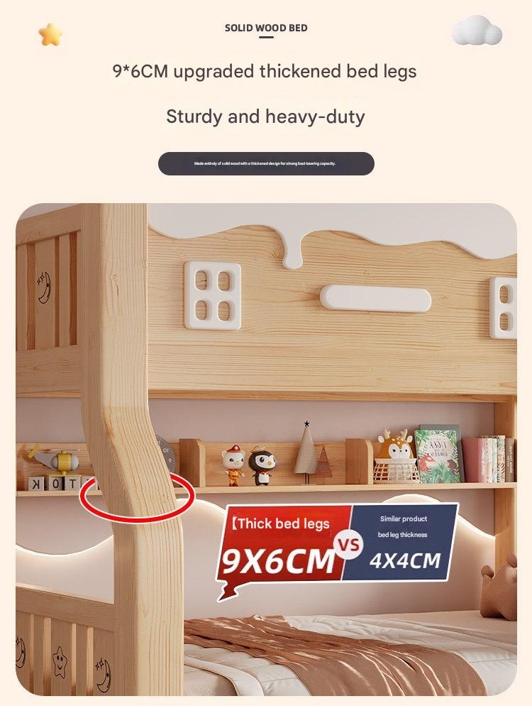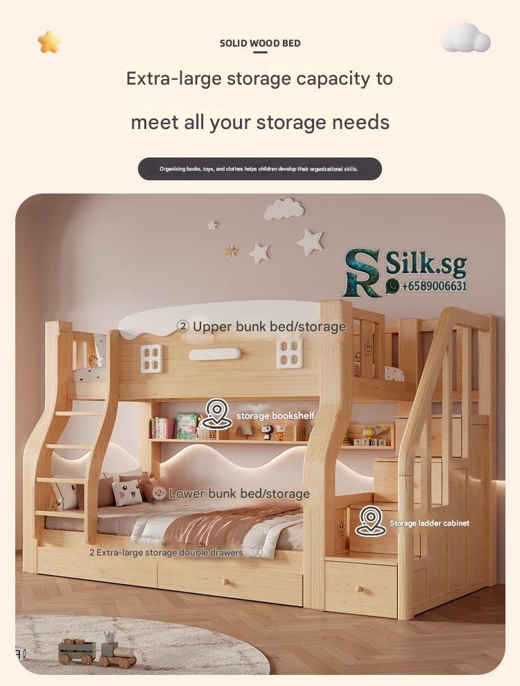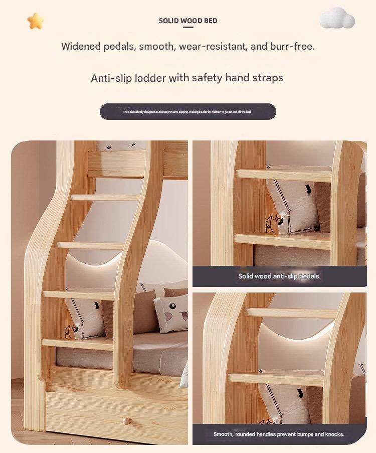 Jinduoxi – Solid Wood Bunk Bed with Storage & 60cm Guardrail
