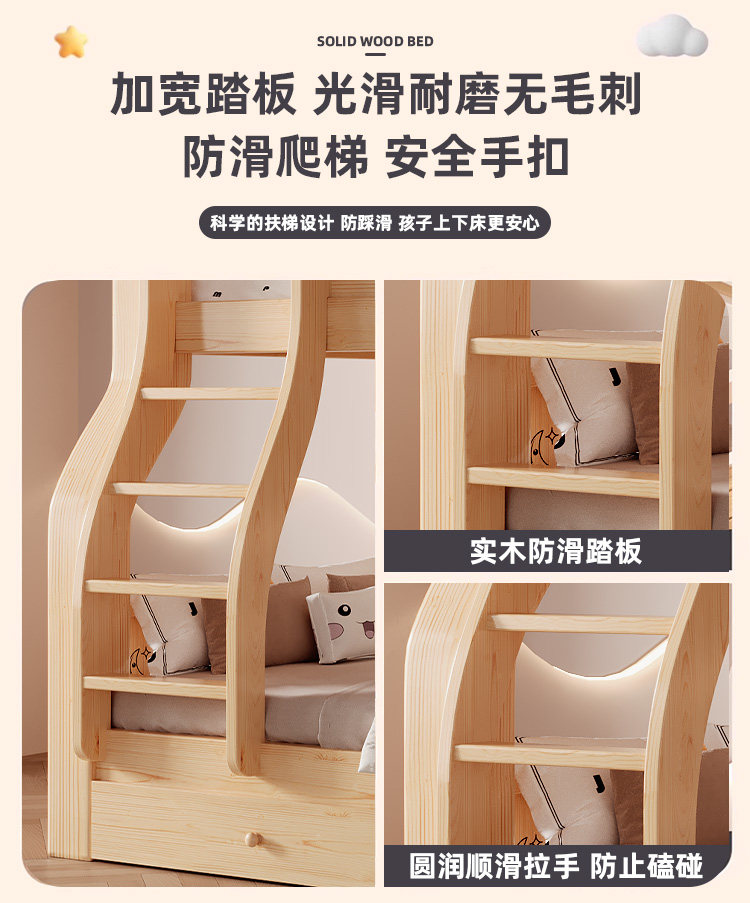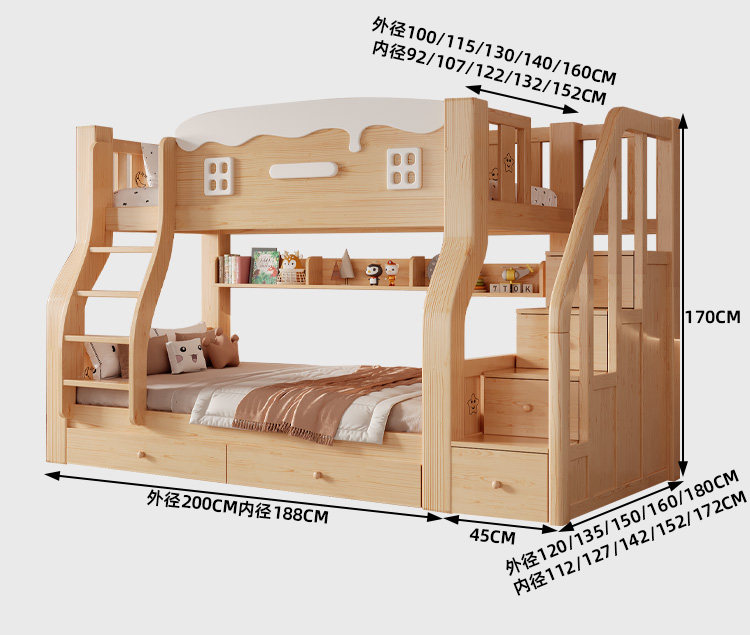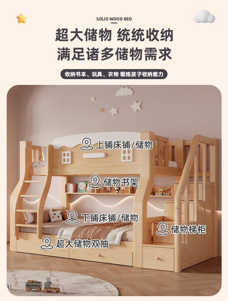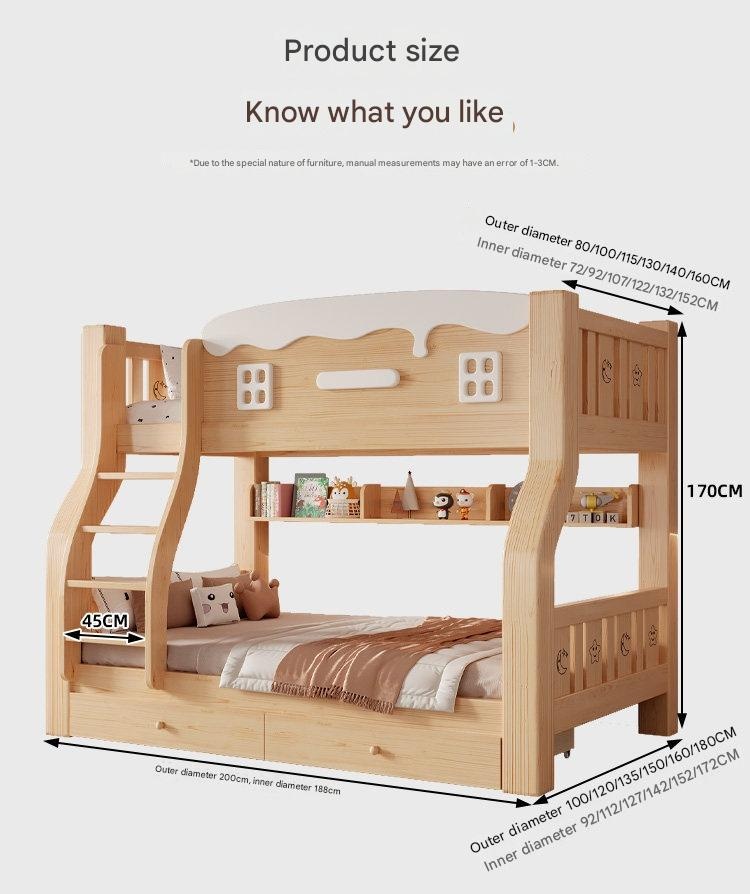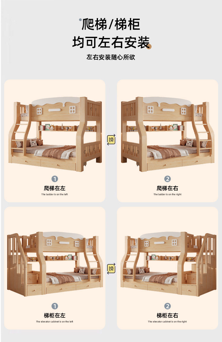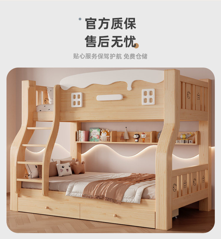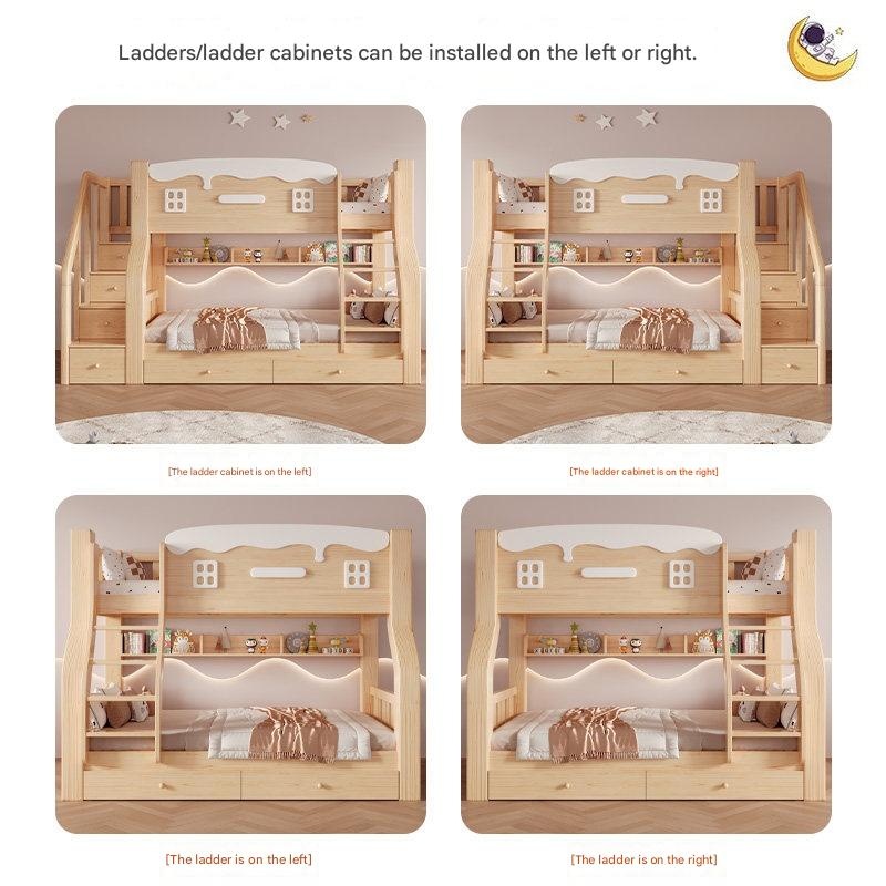 Jinduoxi – Solid Wood Bunk Bed with Storage & 60cm Guardrail