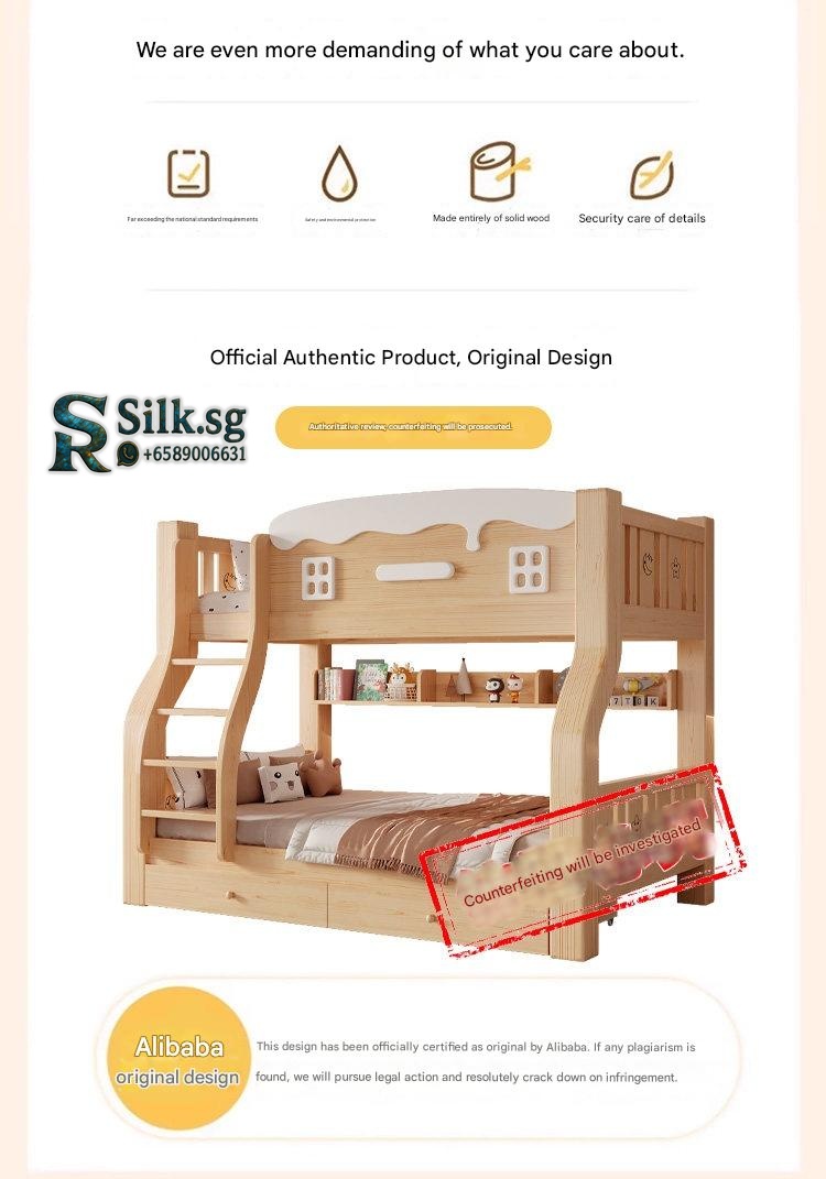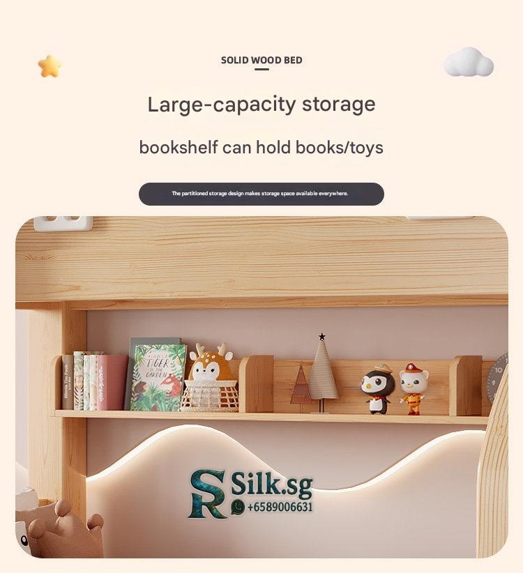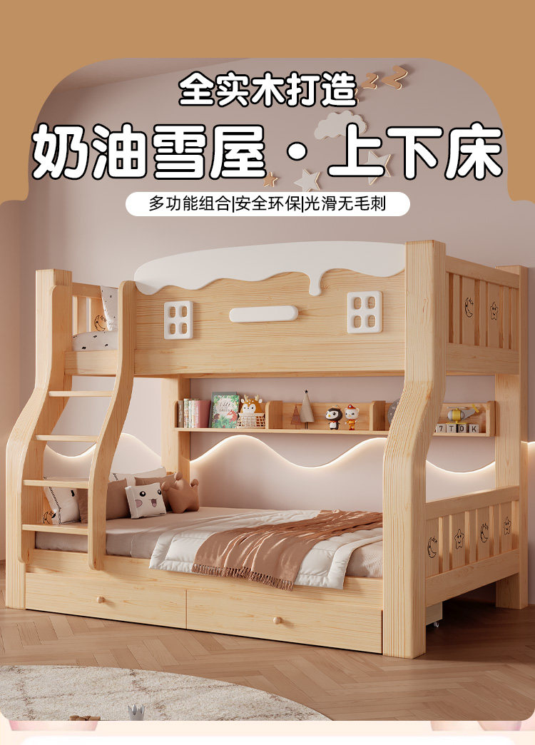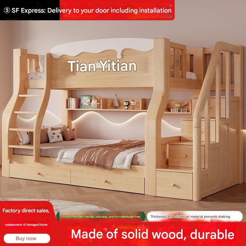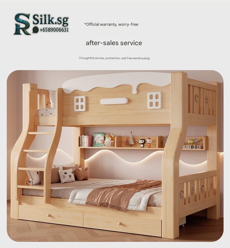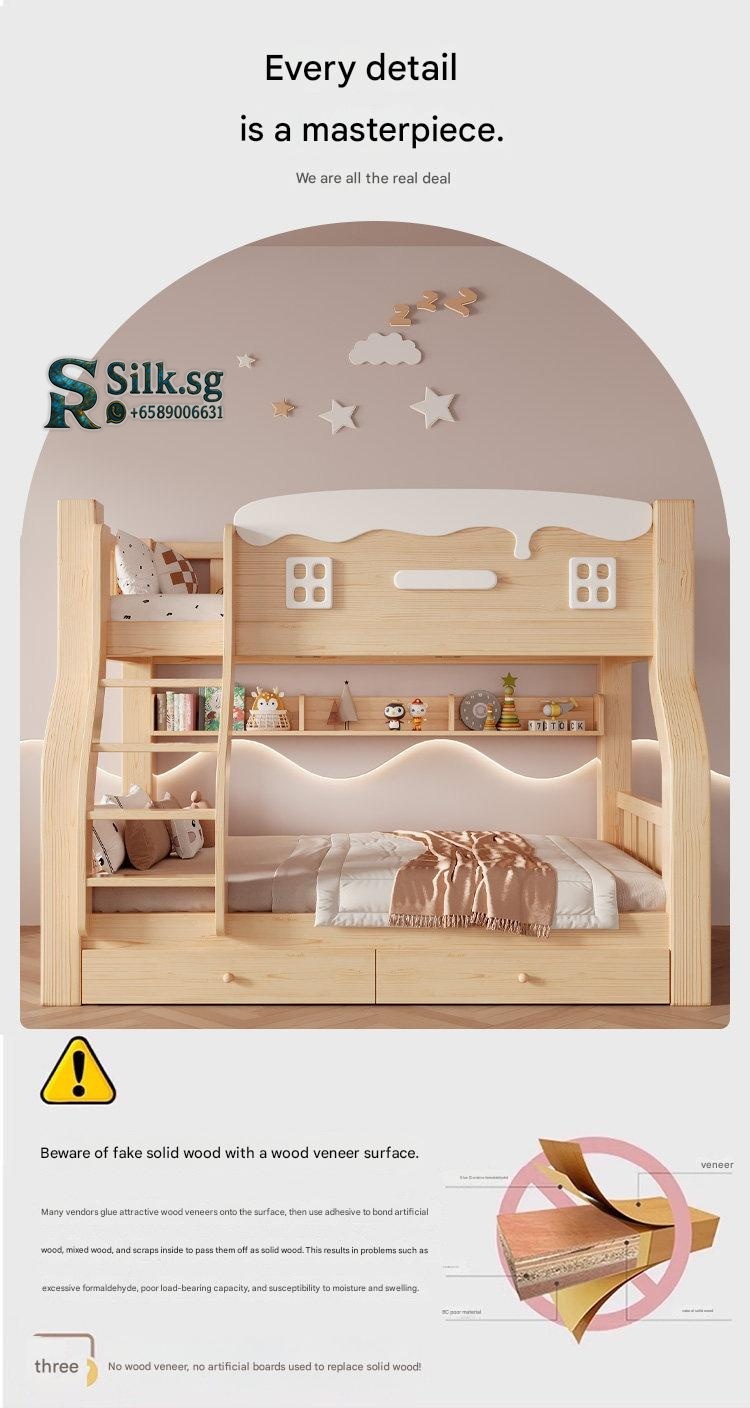 Jinduoxi – Solid Wood Bunk Bed with Storage & 60cm Guardrail