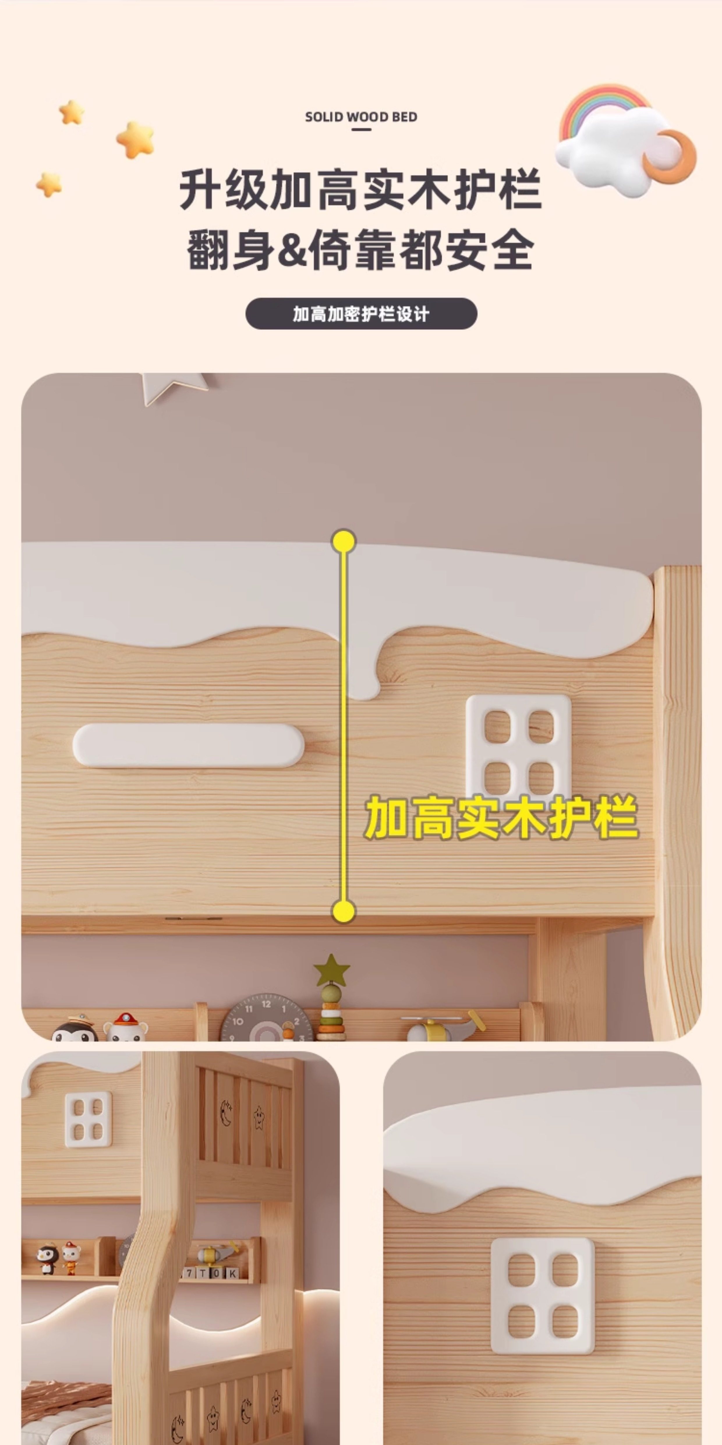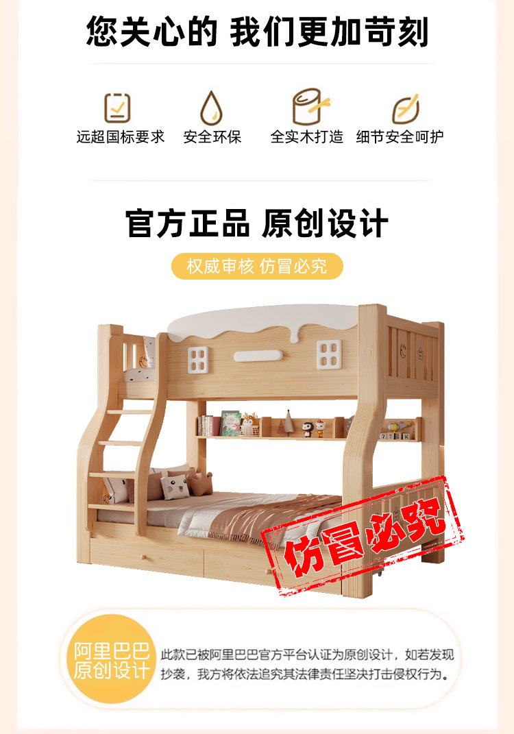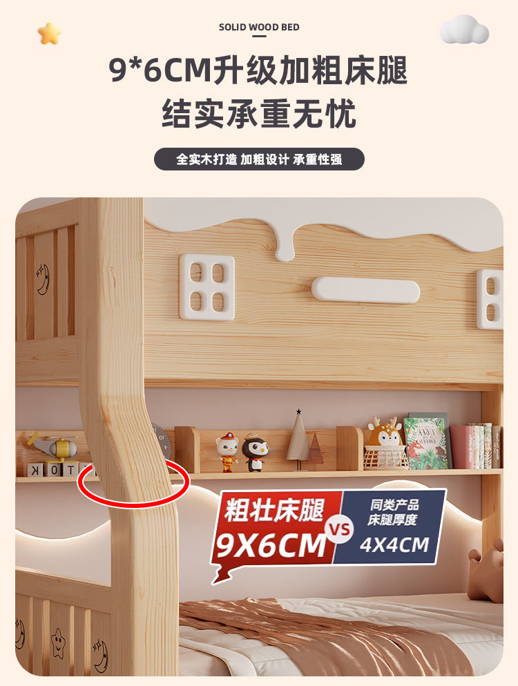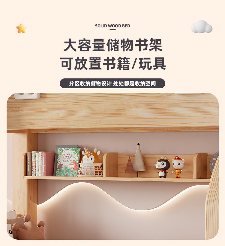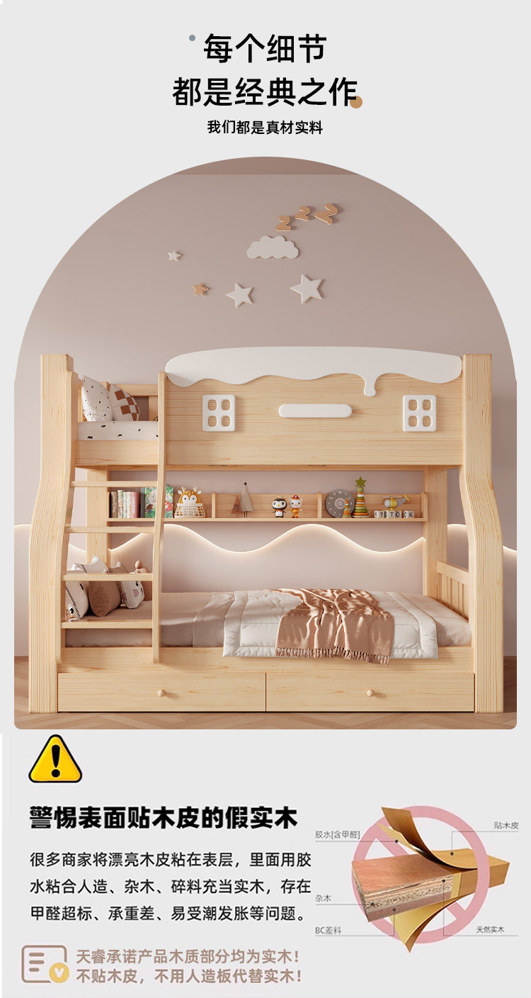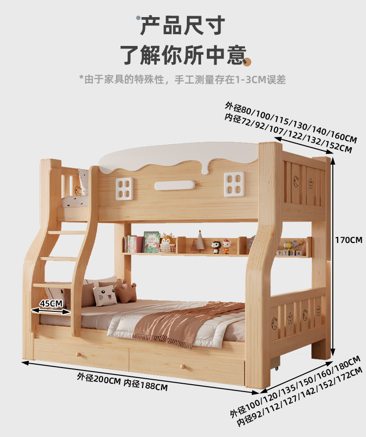 Jinduoxi – Solid Wood Bunk Bed with Storage & 60cm Guardrail
