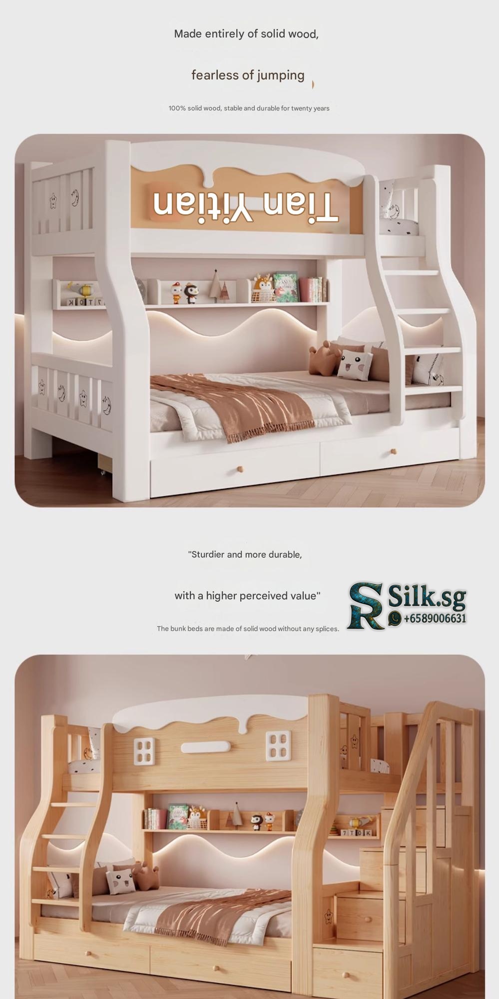 | Color | Elegant Ivory White – Bare Bed + 2 Mattresses (Assembly Included), Elegant Ivory White – Bare Bed + 2 Mattresses (Delivery Upstairs), Elegant Ivory White – Bunk Bed + Bookshelf + Drawer – + 2 Mattresses (Assembly Included), Elegant Ivory White – Bunk Bed + Bookshelf + Drawer – + 2 Mattresses (Delivery Upstairs), Elegant Ivory White – Bunk Bed + Bookshelf – + 2 Mattresses (Assembly Included), Elegant Ivory White – Bunk Bed + Bookshelf – + 2 Mattresses (Delivery Upstairs), Elegant Ivory White – Bunk Bed + Drawer – + 2 Mattresses (Assembly Included), Elegant Ivory White – Bunk Bed + Drawer – + 2 Mattresses (Delivery Upstairs), Natural Wood Style – Bare Bed + 2 Mattresses (Assembly Included), Natural Wood Style – Bunk Bed + Bookshelf + Drawer – + 2 Mattresses (Assembly Included), Natural Wood Style – Bunk Bed + Bookshelf + Drawer – + 2 Mattresses (Assembly Included, Total Length 2.45m), Natural Wood Style – Bunk Bed + Bookshelf + Drawer – + 2 Mattresses (Delivery Upstairs), Natural Wood Style – Bunk Bed + Bookshelf – + 2 Mattresses (Assembly Included), Natural Wood Style – Bunk Bed + Bookshelf – + 2 Mattresses (Delivery Upstairs), Natural Wood Style – Bunk Bed + Drawer – + 2 Mattresses (Assembly Included), Natural Wood Style – Bunk Bed + Drawer – + 2 Mattresses (Delivery Upstairs), Natural Wood Style – Ladder Bed – Bare Bed + 2 Mattresses (Delivery Upstairs), Two Colors Optional – Left or Right Ladder – Lower Bed Size |