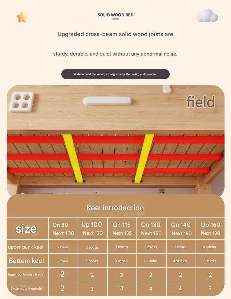This sturdy double-layer wooden bunk bed is perfect for maximizing space in small apartments or shared rooms. Featuring safety guardrails, built-in storage, and a minimalist design, it combines functionality with natural wood beauty. Create a cozy, versatile sleeping solution today.