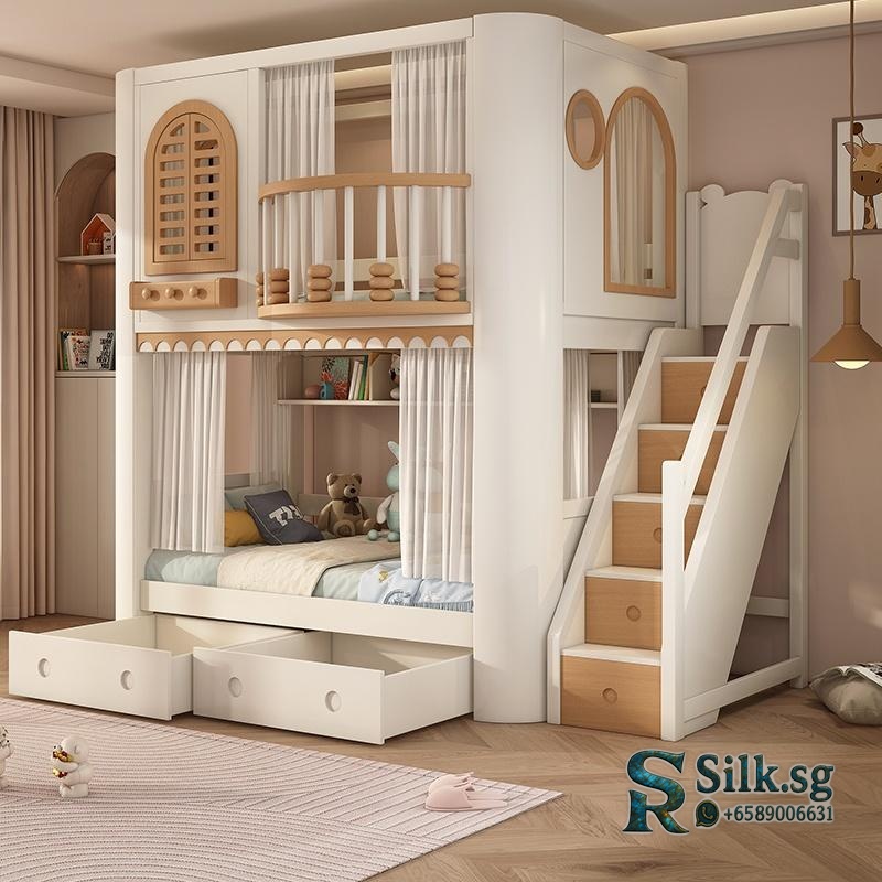 This solid wood bunk bed offers a safe, spacious sleep solution with a high guardrail and versatile storage options. Perfect for siblings sharing a room, its durable, non-interference design ensures peaceful nights and a cozy, organized space theyll love for years.