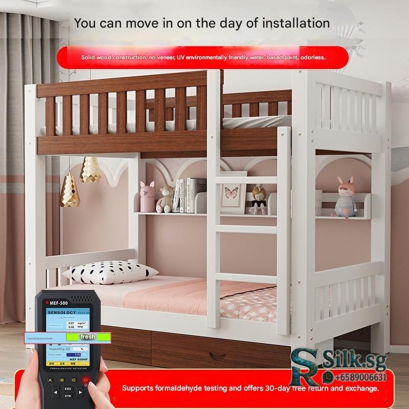 Wooden Bunk Bed – Solid Wood Double Decker with Storage & Safety Rail