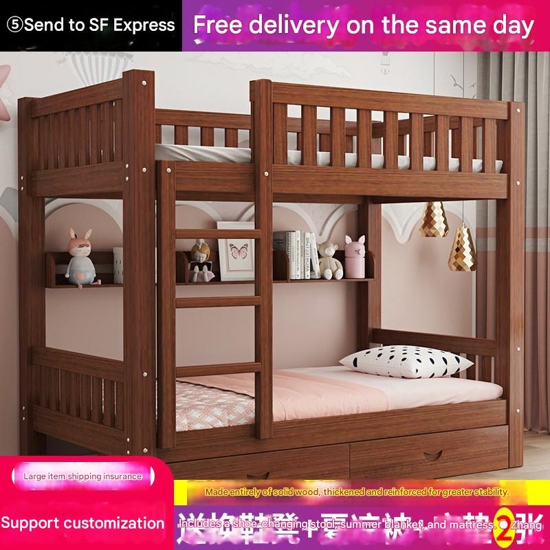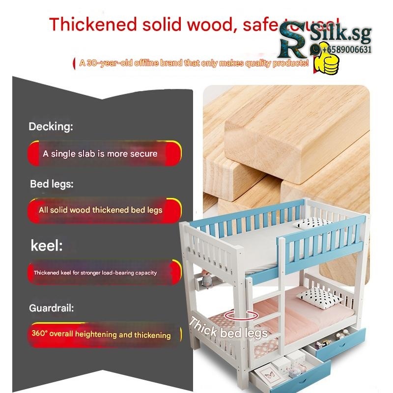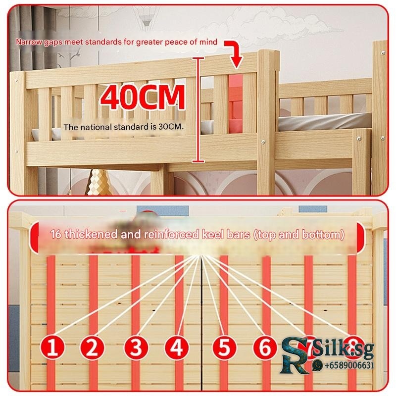 Fenlisi – Solid Wood Bunk Bed with High Guardrail & Storage Options