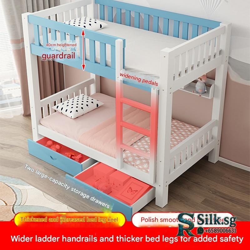 Solid Wood Bunk Bed – High – Low Twin Layer with Storage & Safety Rail