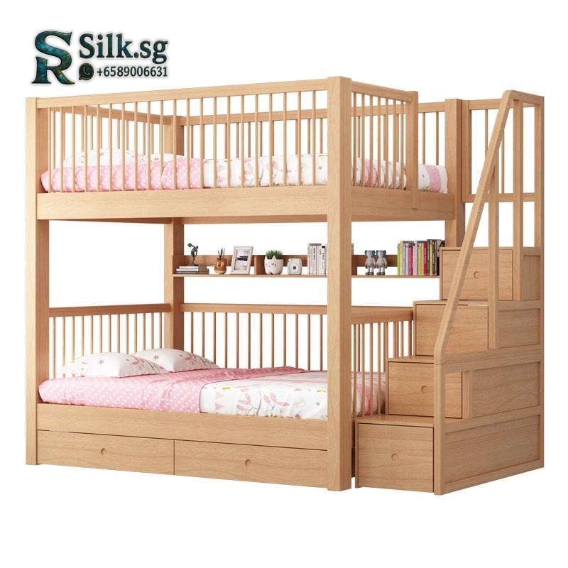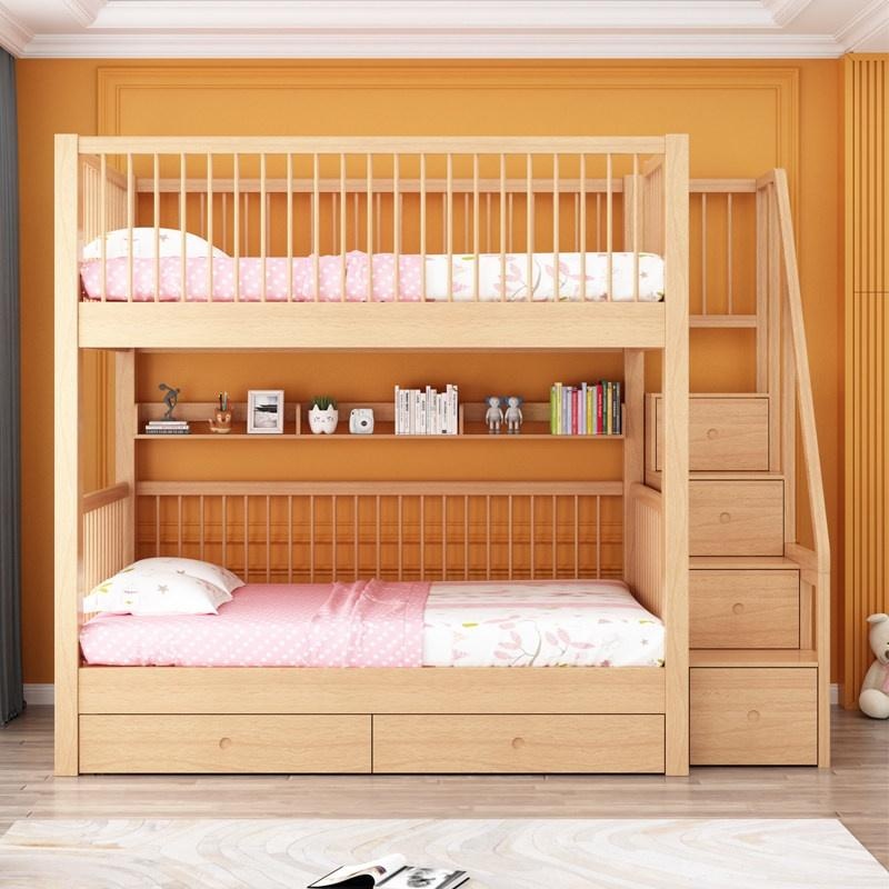 Wooden Bunk Bed – Solid Wood Double Decker with Storage & Guardrail