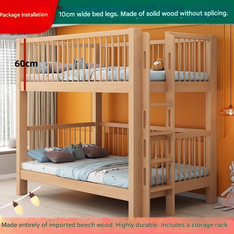 Wooden Bunk Bed – Solid Wood Double Decker with Storage & Safety Rail