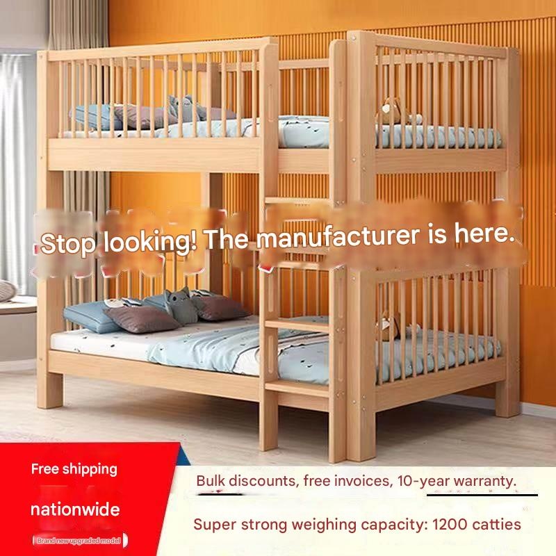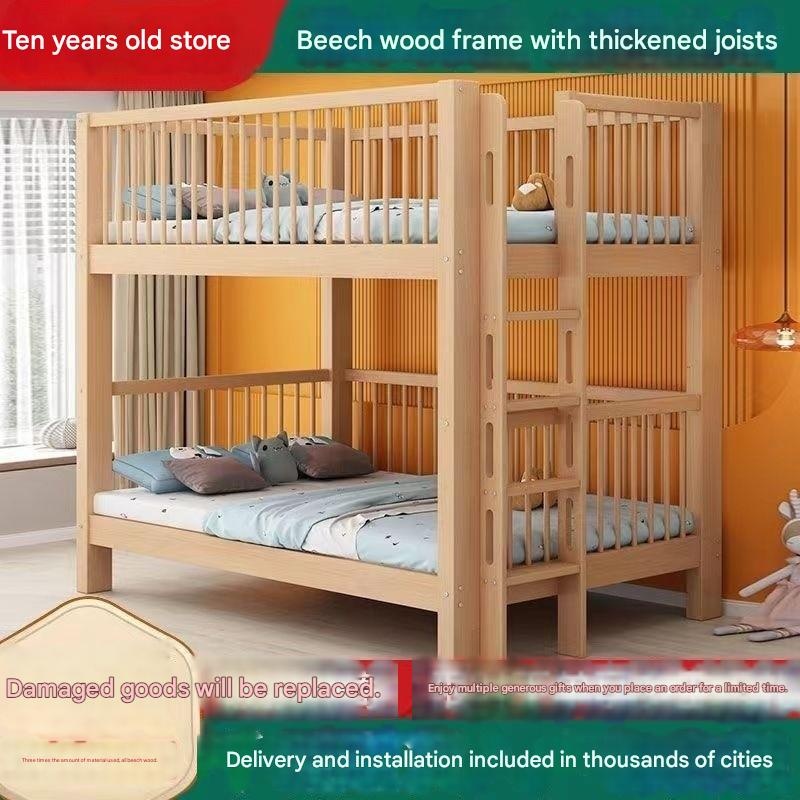 Fenlisi – Solid Wood Bunk Bed with High Guardrail & Storage Options