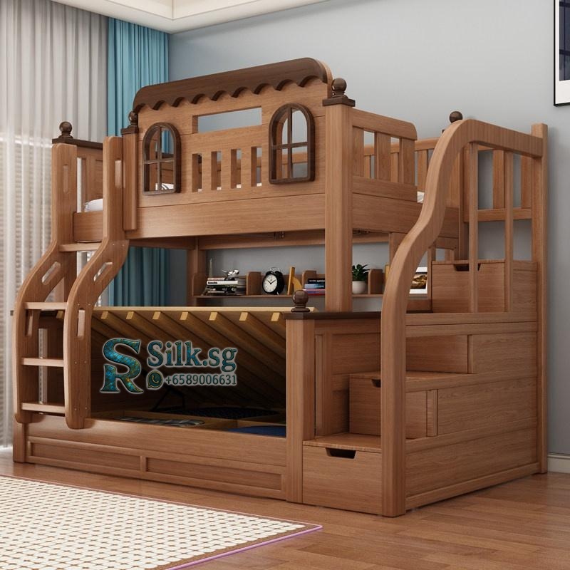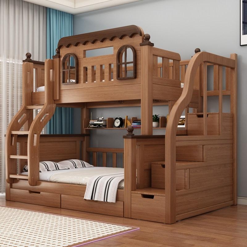 Solid Wood High – Low Bunk Bed with Storage & Bookshelf – Adult & Kids