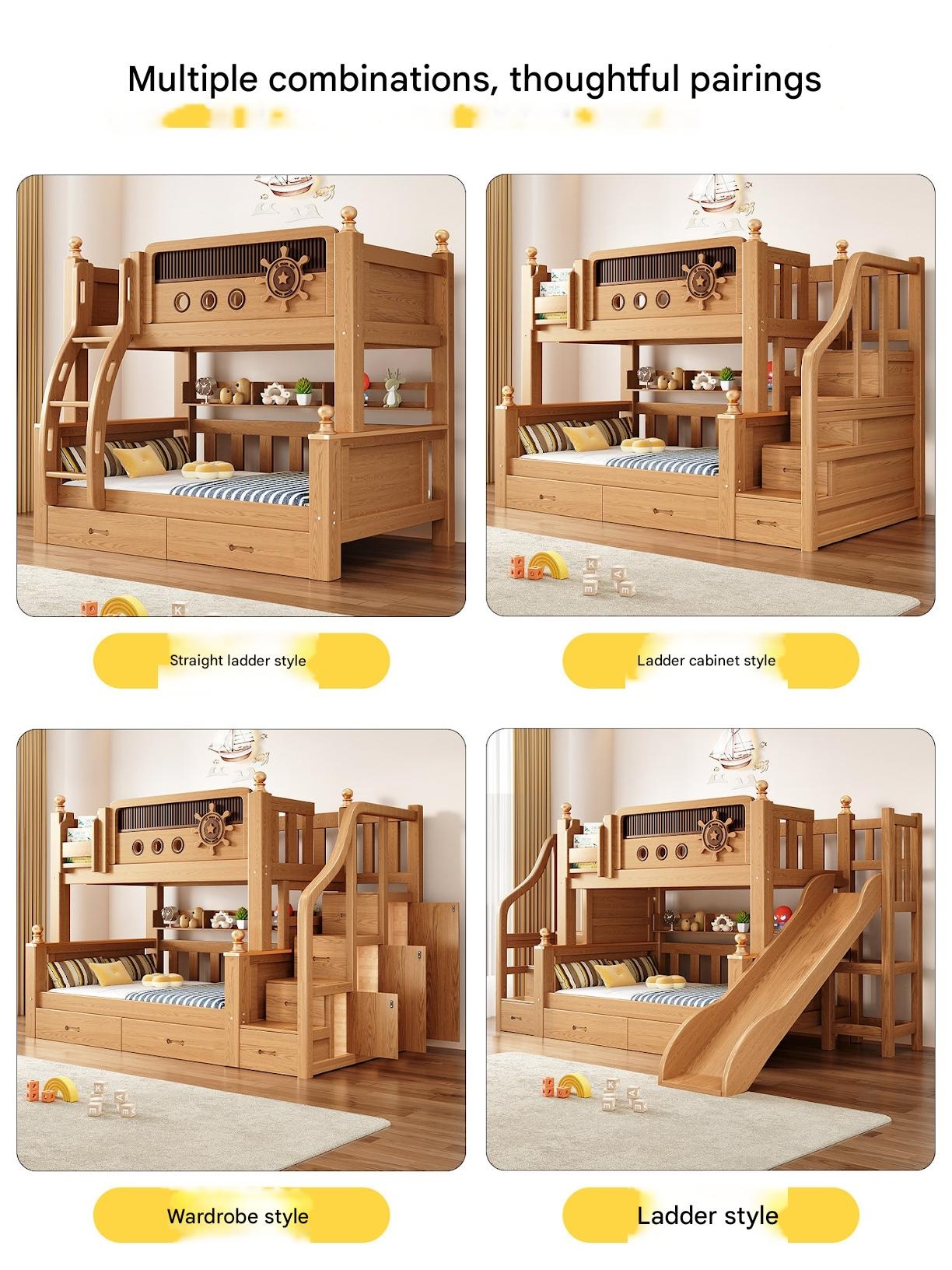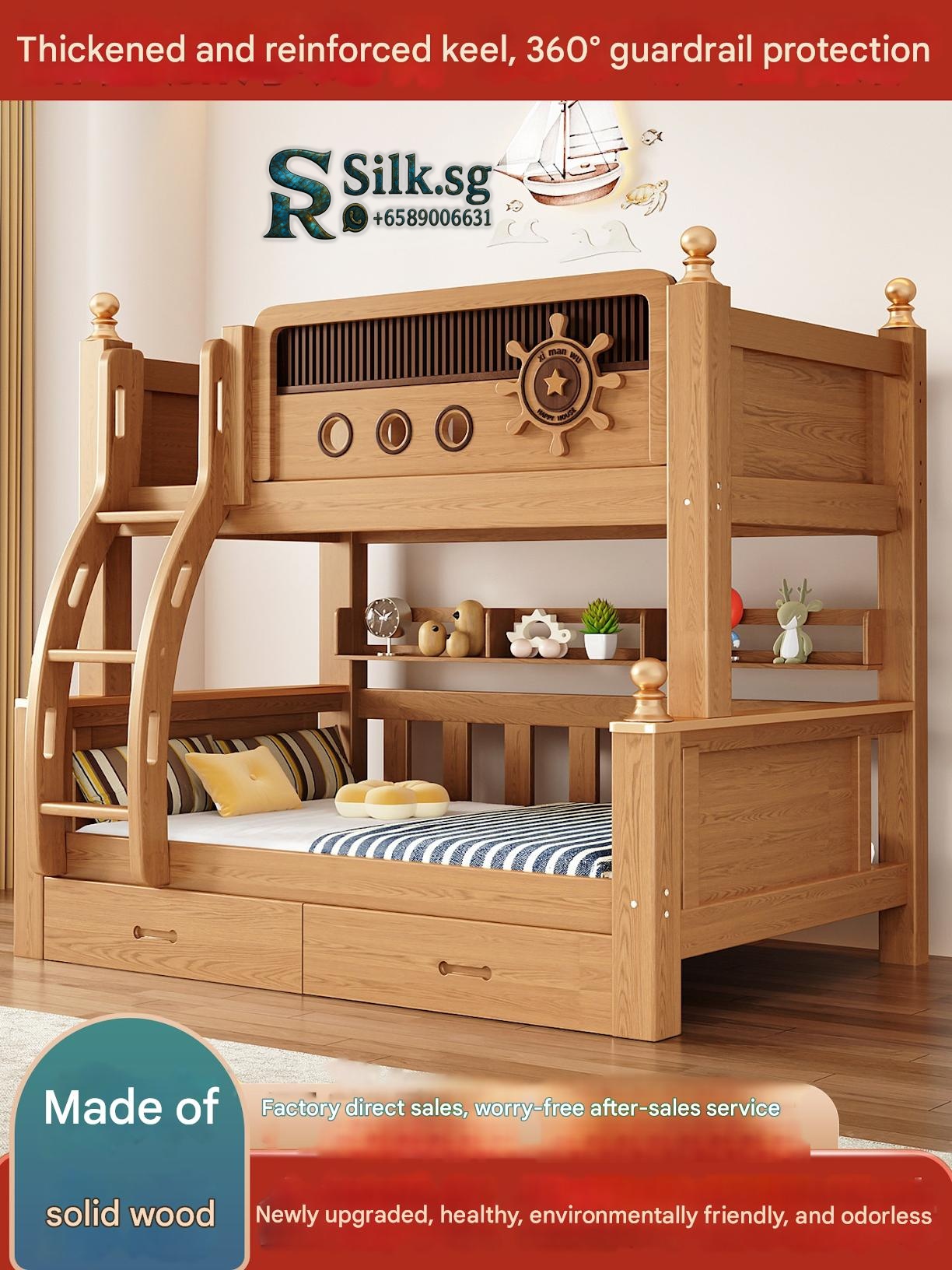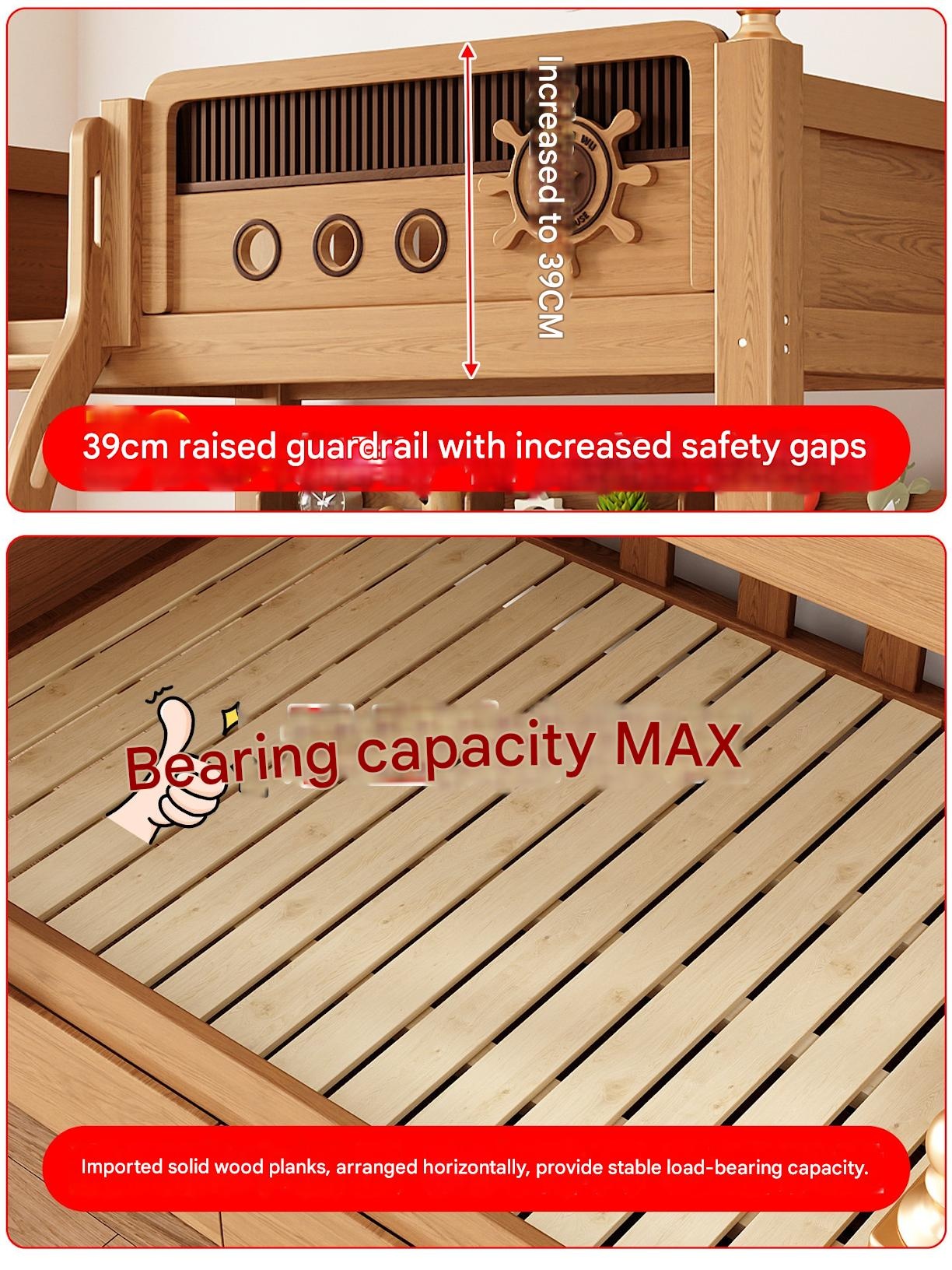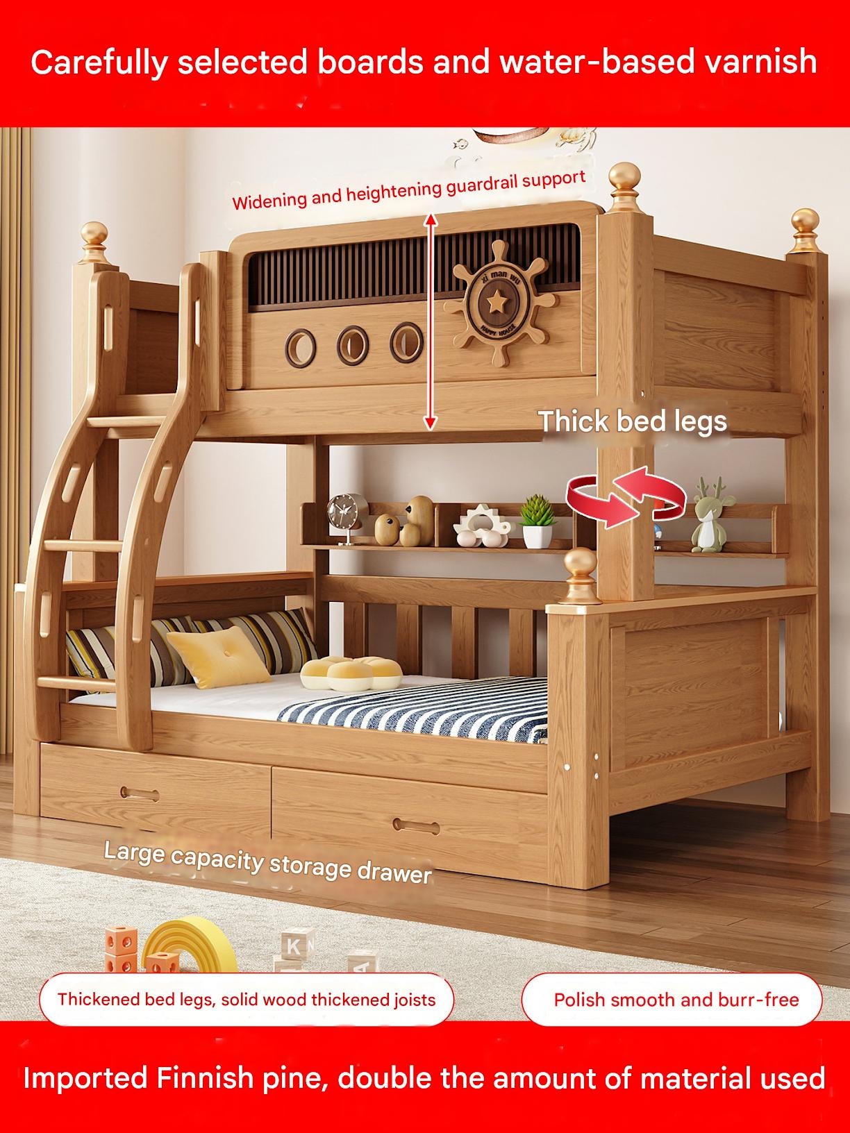 Jinduoxi – Solid Wood Bunk Bed with Storage & 60cm Guardrail