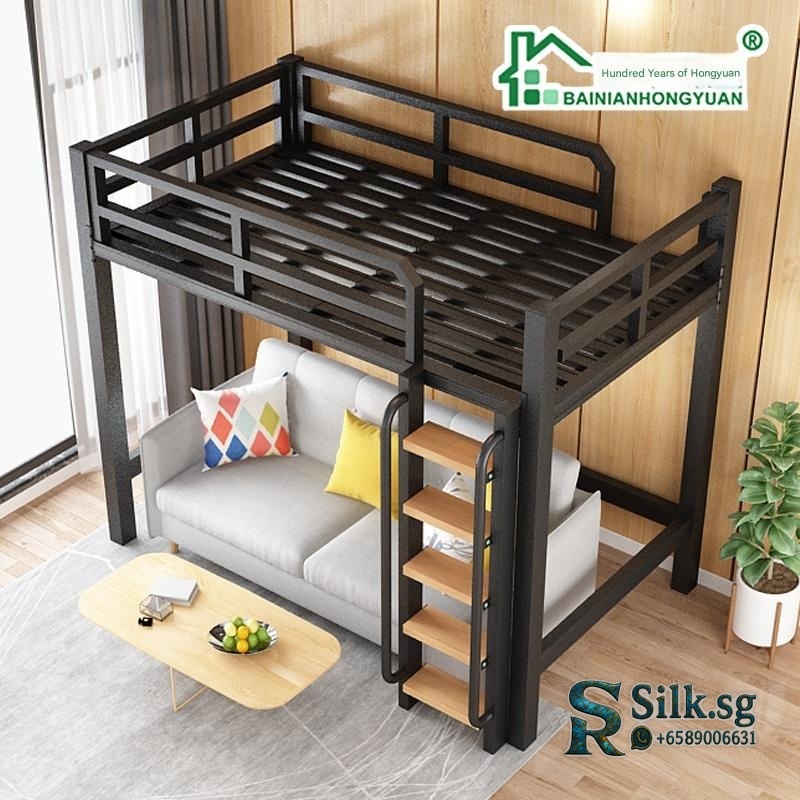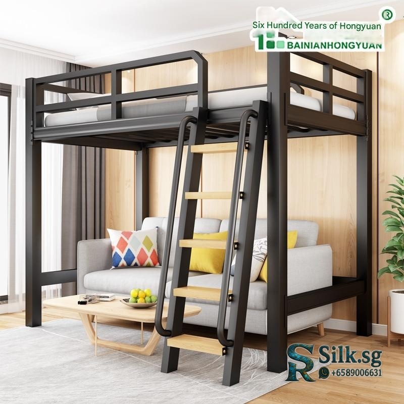 Tieyifang – Modern Iron Loft Bed with Storage & Guardrail, Space – Sav