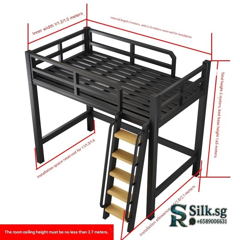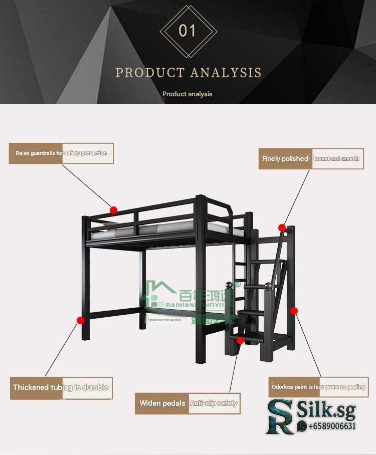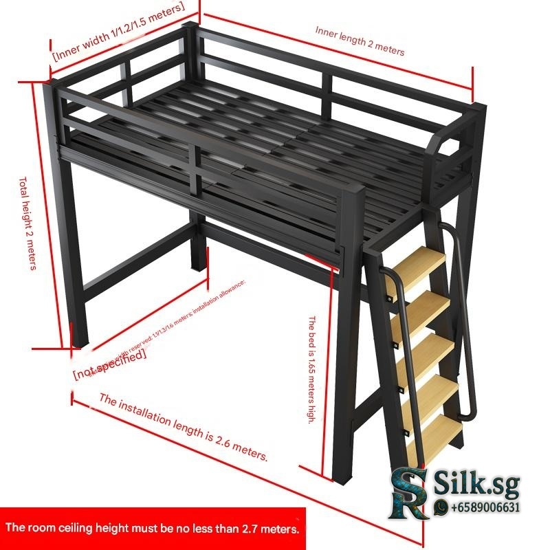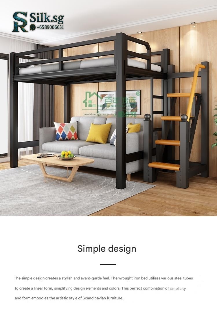 Ding Qi Xin – Nordic Loft Bed with Storage Shelf, Space – Saving Iron