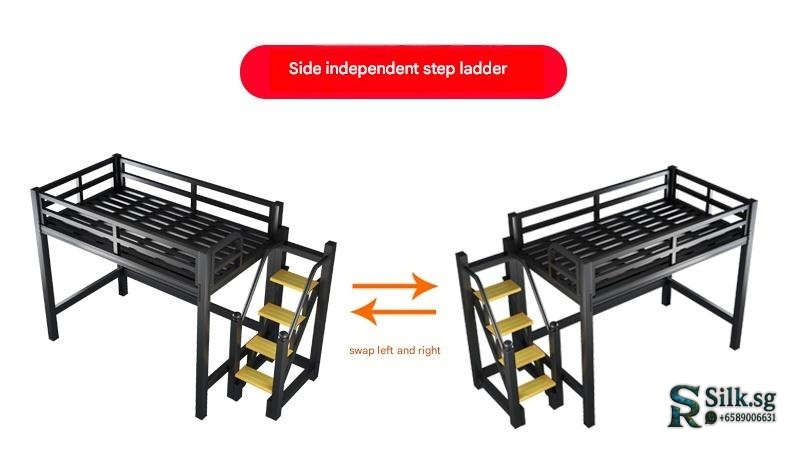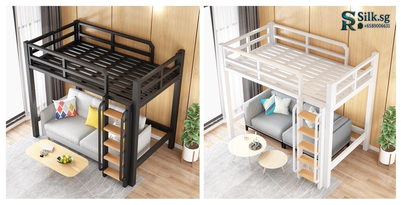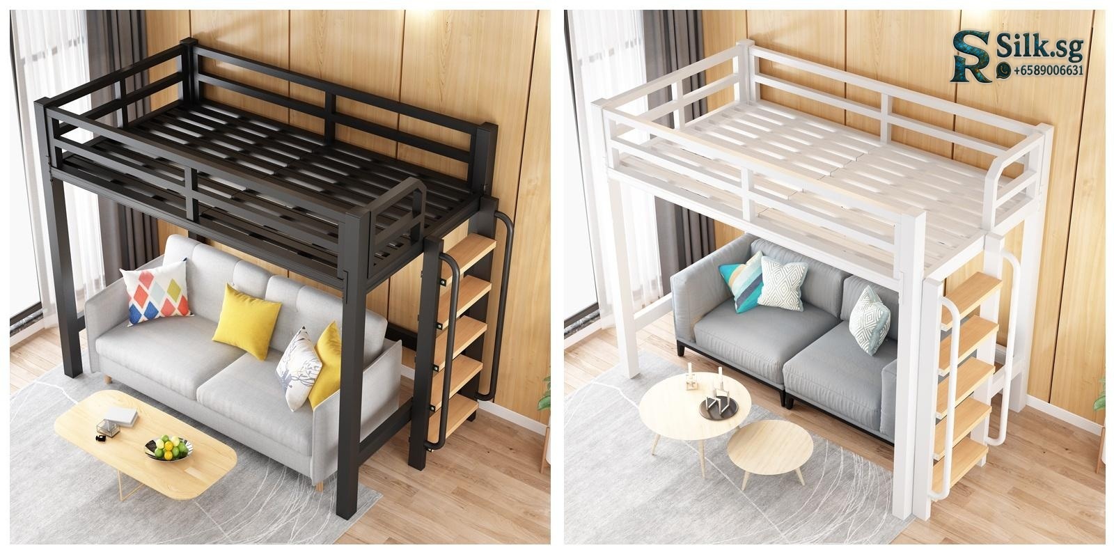 LoftBed – Space – Saving Iron Loft Bed with Storage & Ladder