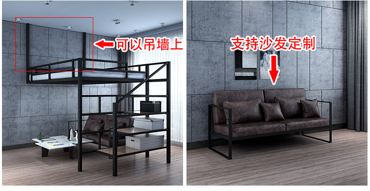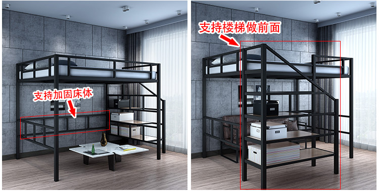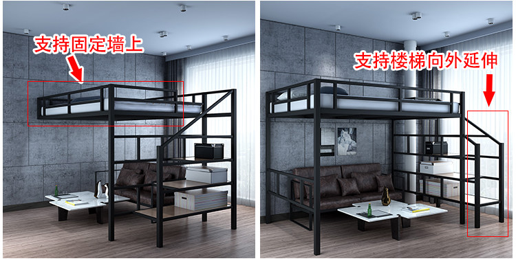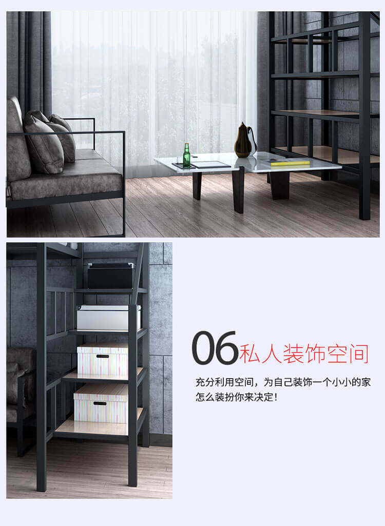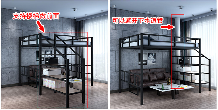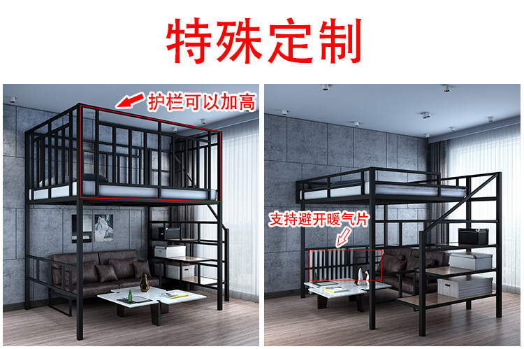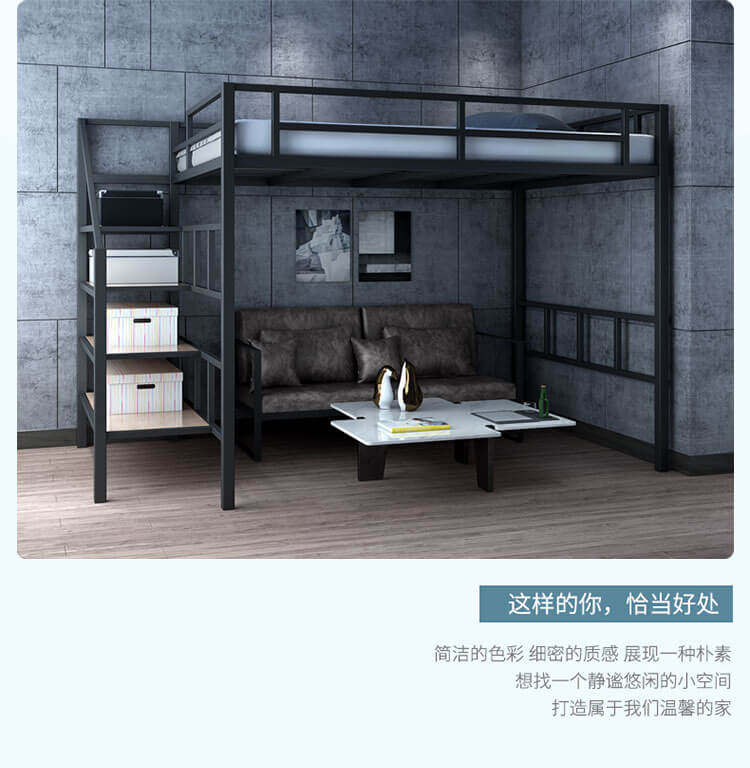 Zhujiafang – Modern Duplex Loft Bed with Split – Level Iron Frame & Fo
