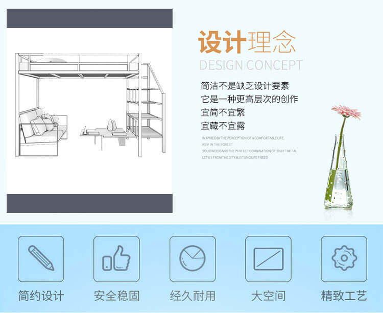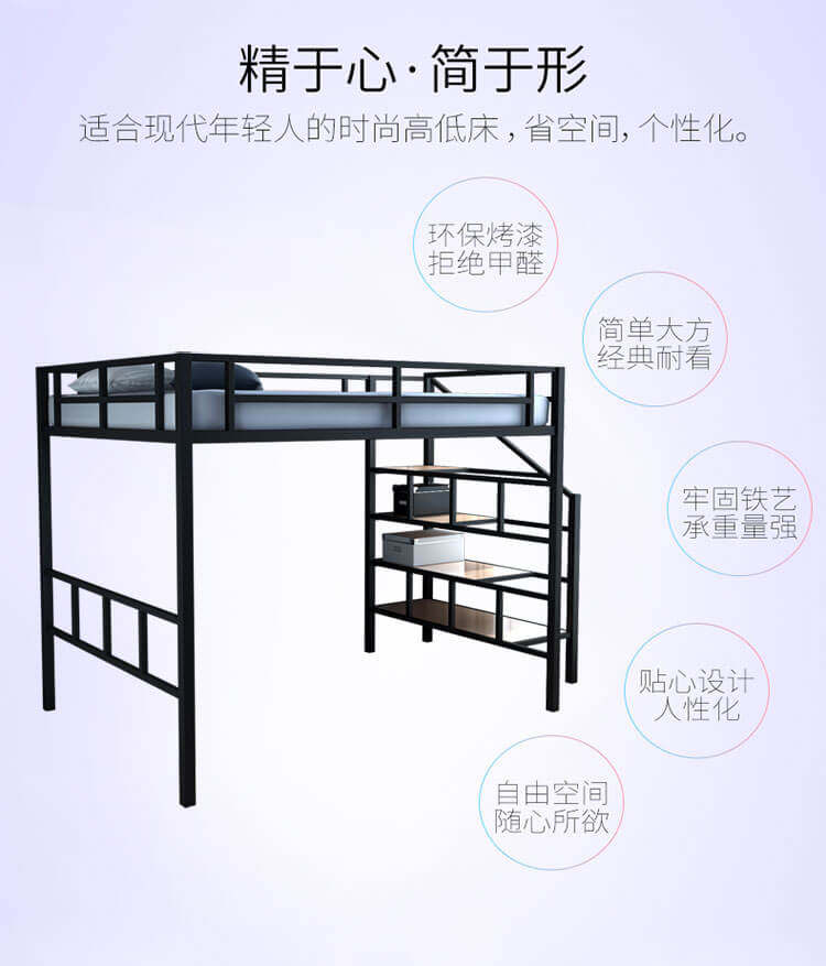 Minyue – Space – Saving Iron Loft Bed with Storage, 1500kg Load, 5 – Y