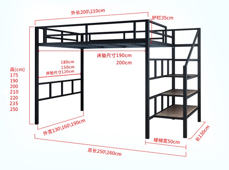 LoftSpace – Iron High Frame Loft Bed with Storage & Custom Colors