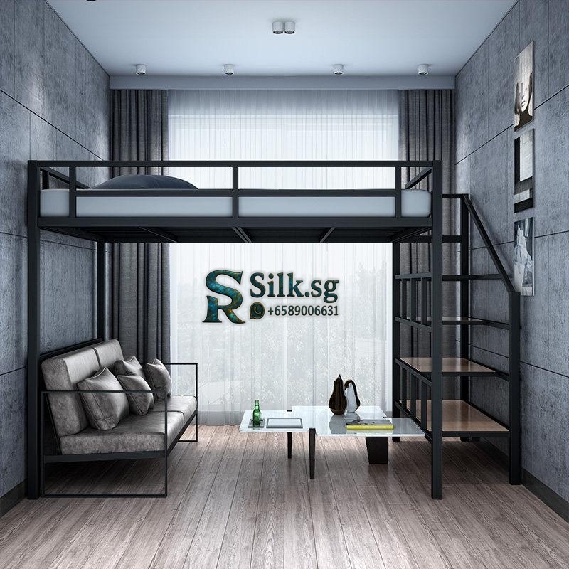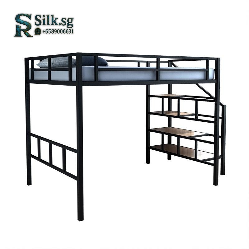 Tieyifang – Modern Iron Loft Bed with Storage & Guardrail, Space – Sav