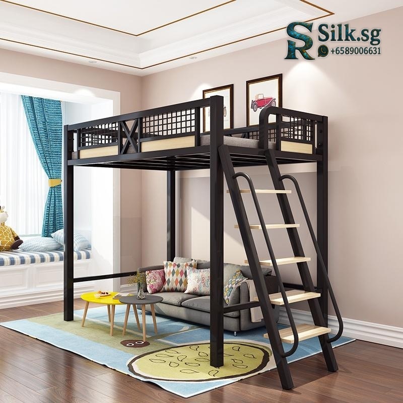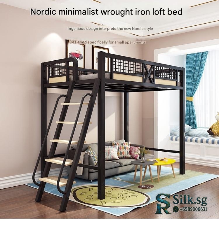 Tieyifang – Modern Iron Loft Bed with Storage & Guardrail, Space – Sav