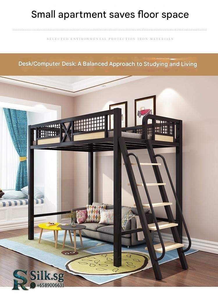 Ding Qi Xin – Nordic Loft Bed with Storage Shelf, Space – Saving Iron